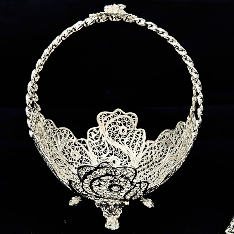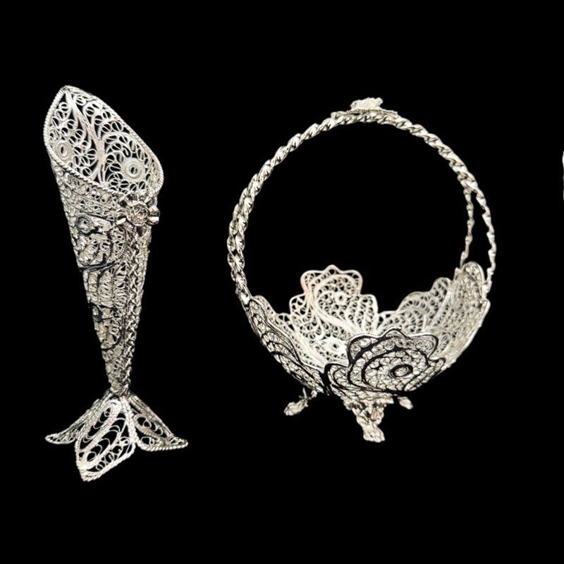 ظروف ملیله کاری کشکول زنبیل دسته دار و گلدان حرمی
