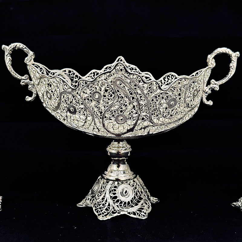 ظروف ملیله کاری اصفهان، اثری هنری و نفیس از دستان هنرمندان چیره دست اصفهانی است. این ظروف زیبا، با ظرافت و دقت فراوان ملیله کاری شده و جلوه‌ای بی‌نظیر به دکوراسیون منزل شما می‌بخشد. به همراه ضمانت نامه 48 ماهه ارائه میشود‌ و دارای شناسنامه هنری است.