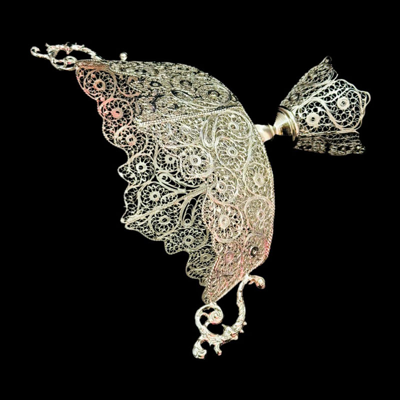 ملیله‌کاری، هنر ظریف و زیبای ساخت اشیاء تزئینی از مفتول‌های نازک مس با روکش نقره است که ریشه در تاریخ و فرهنگ اصفهان دارد. محصولات ملیله‌کاری با طرح‌های پیچیده و چشم‌نواز، جلوه‌ای خاص به دکوراسیون منزل می‌بخشند و می‌توانند به عنوان هدیه‌ای ارزشمند مورد استفاده قرار گیرند. کیفیت ملیله‌کاری تولیدی بُته چی به دلیل استفاده از مواد اولیه مرغوب و دقت بالای هنرمندان، از کیفیت بالایی برخوردار است و می‌تواند سال‌ها زیبایی خود را حفظ کند. ساخت ظروف ملیله‌کاری نیاز به مهارت و دقت بالایی دارد. در ابتدا، فلز مورد استفاده برای ساخت ظروف ملیله کاری به رشته‌های نازک و بسیار دقیق تبدیل می‌شود. سپس این رشته‌ها با دستان هنرمند به اشکال پیچیده و ظریف بافته می‌شوند. این رشته‌های فلزی پس از بافتن، به شکل یک ظرف با جزئیات دقیق و ظریف درمی‌آیند که اغلب با الگوهای گل و گیاه یا طرح‌های هندسی زینت داده می‌شوند. برای تکمیل کار، معمولاً این ظروف با استفاده از سنگ‌های قیمتی یا جواهرات دیگر تزئین می‌شوند تا جلوه‌ای خاص و نفیس پیدا کنند. با خرید ظروف ملیله کاری اصفهان، شما نه تنها یک شیء زیبا و دکوری را به خانه خود اضافه می‌کنید، بلکه از هنر و هنرمندان ایرانی نیز حمایت می‌کنید. به علت دست ساز بودن تمامی محصولات امکان اختلاف سایز اندکی وجود دارد.