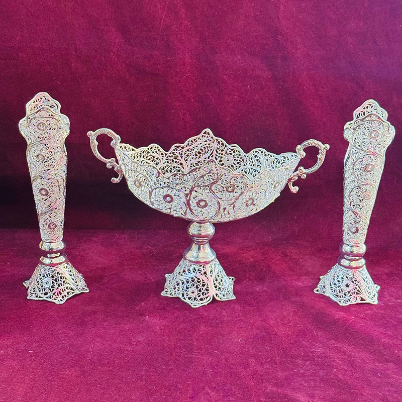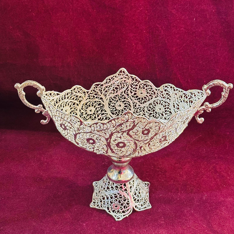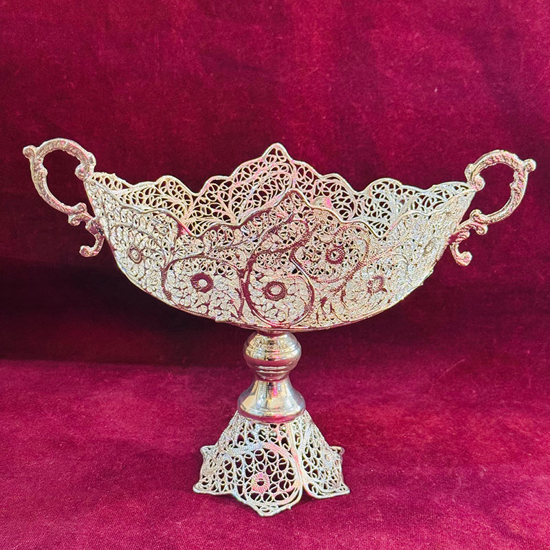 ملیلهکاری، هنر ظریف و زیبای ساخت اشیاء تزئینی از مفتولهای نازک مس با روکش نقره است که ریشه در تاریخ و فرهنگ اصفهان دارد. محصولات ملیلهکاری با طرحهای پیچیده و چشمنواز، جلوهای خاص به دکوراسیون منزل میبخشند و میتوانند به عنوان هدیهای ارزشمند مورد استفاده قرار گیرند. کیفیت ملیلهکاری تولیدی بُته چی به دلیل استفاده از مواد اولیه مرغوب و دقت بالای هنرمندان، از کیفیت بالایی برخوردار است و میتواند سالها زیبایی خود را حفظ کند. با خرید ظروف ملیله کاری اصفهان، شما نه تنها یک شیء زیبا و دکوری را به خانه خود اضافه میکنید، بلکه از هنر و هنرمندان ایرانی نیز حمایت میکنید. به علت دست ساز بودن تمامی محصولات امکان اختلاف سایز اندکی وجود دارد.