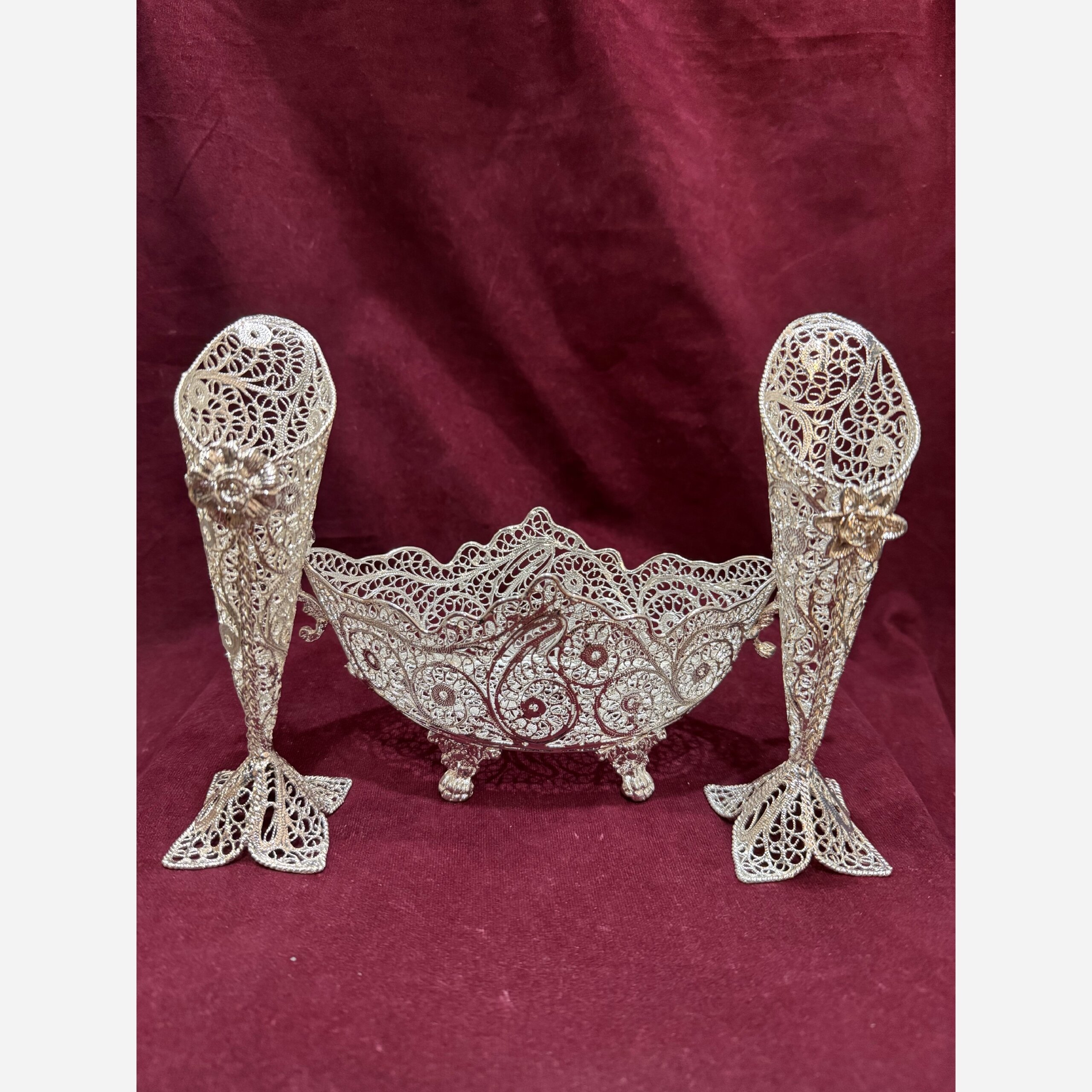 ظروف ملیله کاری کشکول قایقی پایه کوتاه و گلدان ملیله کاری
