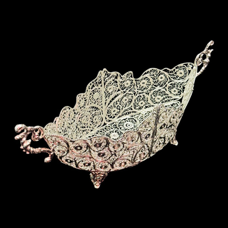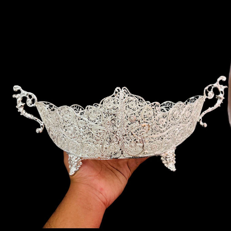 ظروف ملیله کاری کشکول پایه دار زنبیل شماره 3