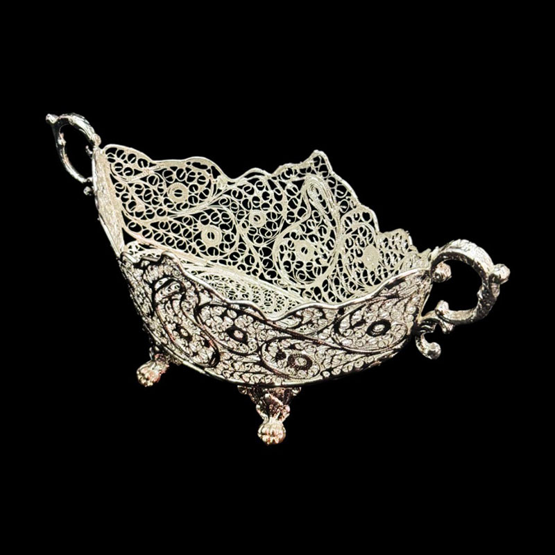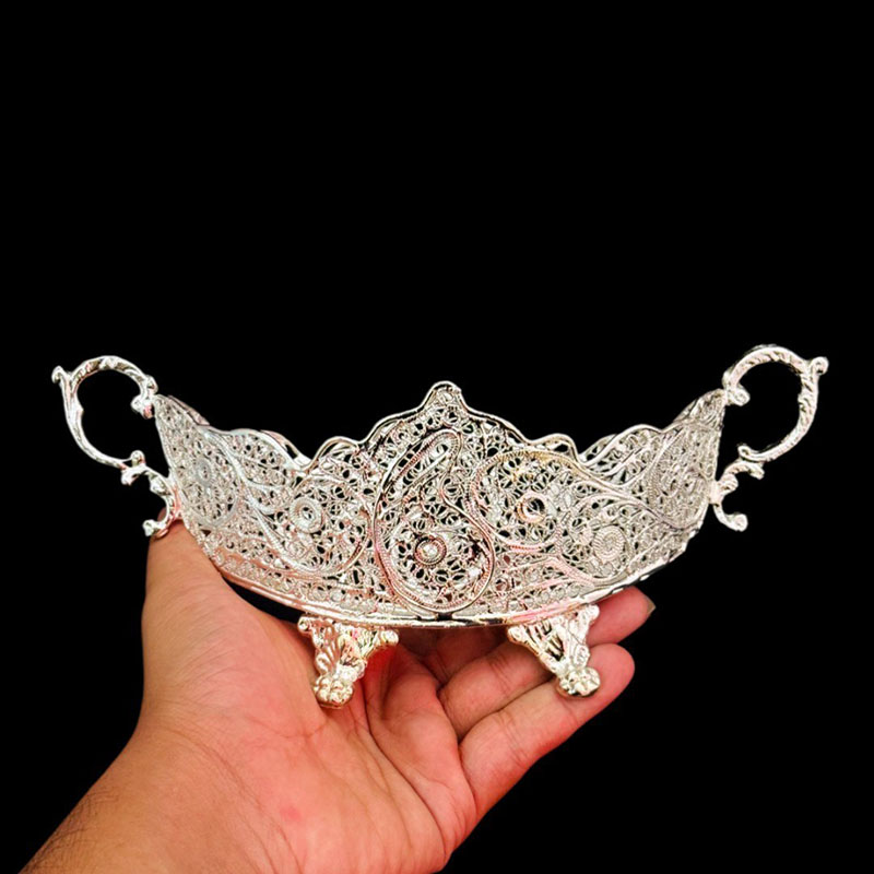 ملیلهکاری، هنر ظریف و زیبای ساخت اشیاء تزئینی از مفتولهای نازک مس با روکش نقره است که ریشه در تاریخ و فرهنگ اصفهان دارد. محصولات ملیلهکاری با طرحهای پیچیده و چشمنواز، جلوهای خاص به دکوراسیون منزل میبخشند و میتوانند به عنوان هدیهای ارزشمند مورد استفاده قرار گیرند. کیفیت ملیلهکاری تولیدی بُته چی به دلیل استفاده از مواد اولیه مرغوب و دقت بالای هنرمندان، از کیفیت بالایی برخوردار است و میتواند سالها زیبایی خود را حفظ کند. ساخت ظروف ملیلهکاری نیاز به مهارت و دقت بالایی دارد. در ابتدا، فلز مورد استفاده برای ساخت ظروف ملیله کاری به رشتههای نازک و بسیار دقیق تبدیل میشود. سپس این رشتهها با دستان هنرمند به اشکال پیچیده و ظریف بافته میشوند. این رشتههای فلزی پس از بافتن، به شکل یک ظرف با جزئیات دقیق و ظریف درمیآیند که اغلب با الگوهای گل و گیاه یا طرحهای هندسی زینت داده میشوند. برای تکمیل کار، معمولاً این ظروف با استفاده از سنگهای قیمتی یا جواهرات دیگر تزئین میشوند تا جلوهای خاص و نفیس پیدا کنند. با خرید ظروف ملیله کاری اصفهان، شما نه تنها یک شیء زیبا و دکوری را به خانه خود اضافه میکنید، بلکه از هنر و هنرمندان ایرانی نیز حمایت میکنید. به علت دست ساز بودن تمامی محصولات امکان اختلاف سایز اندکی وجود دارد.