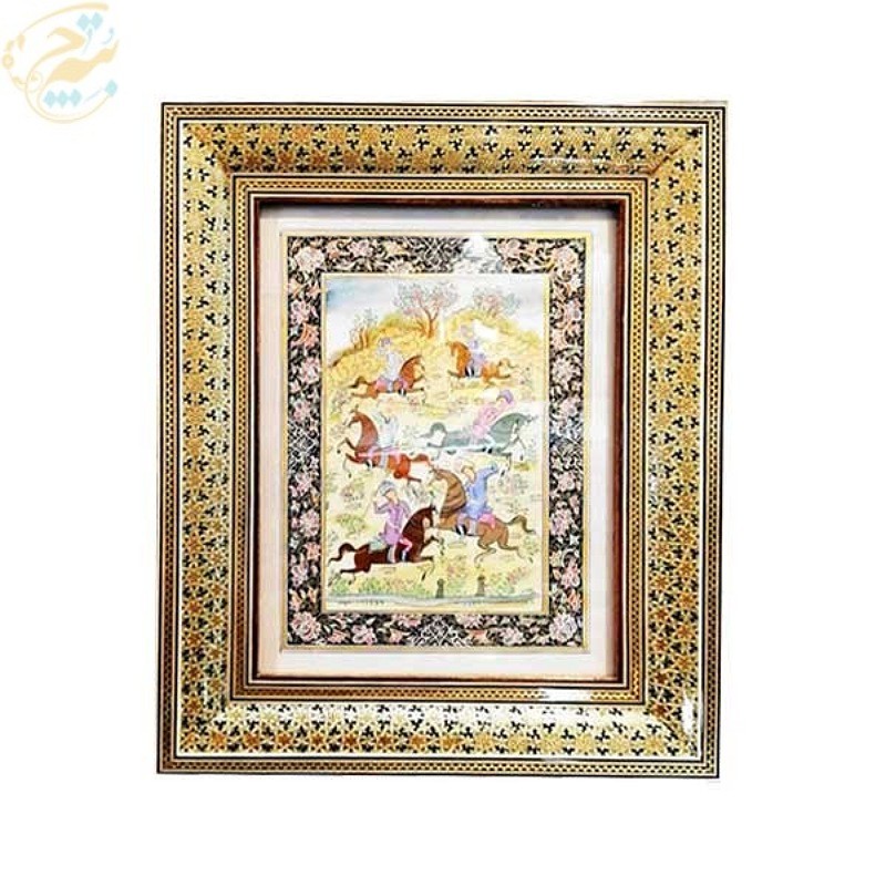 ☑️ جنس قاب از چوب و خاتم کاری است که به دست هنرمندان خاتم کار و نقاش کار شده است. ☑️این تابلو ها اثر دست هنرمندان در اصفهان می باشد و نقوش زیبایی با دقت و مهارت خاصی بر روی آن ایجاد شده است. ☑️قیمت تابلو ها با توجه به ظرافت و هنر به کار رفته و همچنین مدل قاب استفاده شده و سایز آنهامتغیر است. ☑️سفارش انواع قاب های نقاشی با سایز دلخواه و سفارشی شما به صورت عمده ایی و خرده فروشی و با توجه به قیمت و بودجه شما مهیا می گردد .