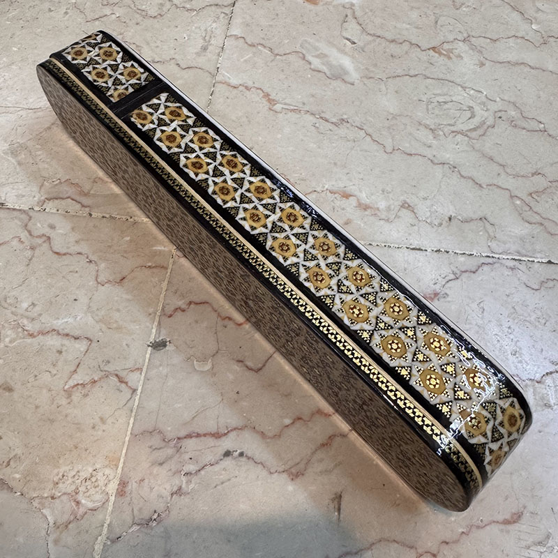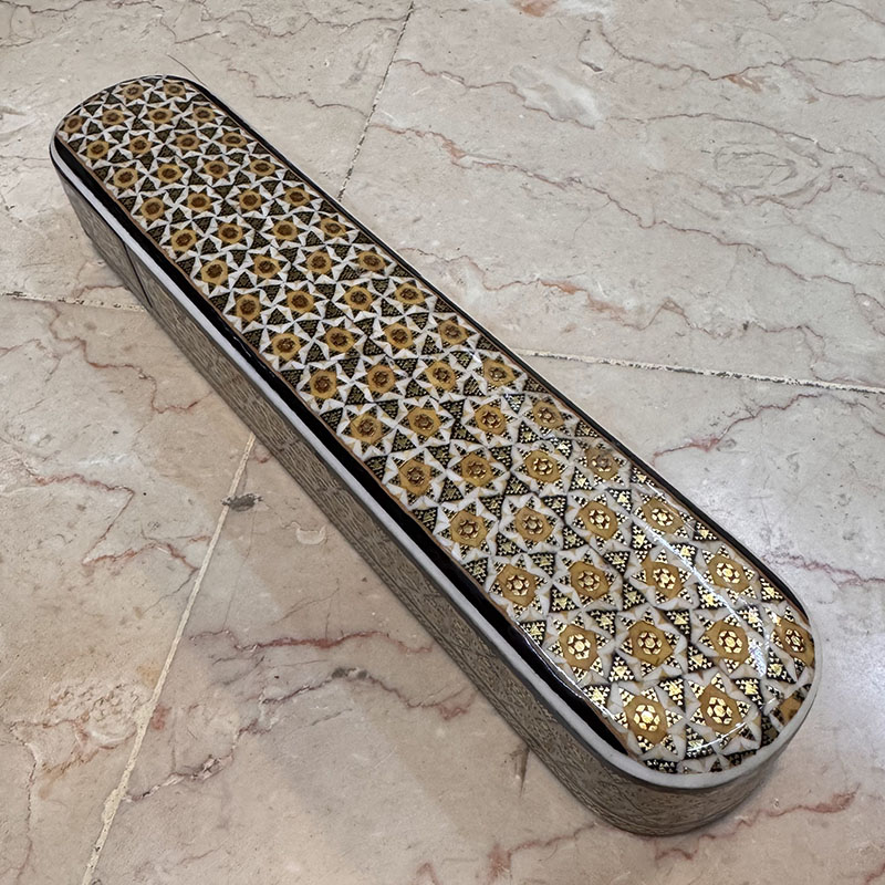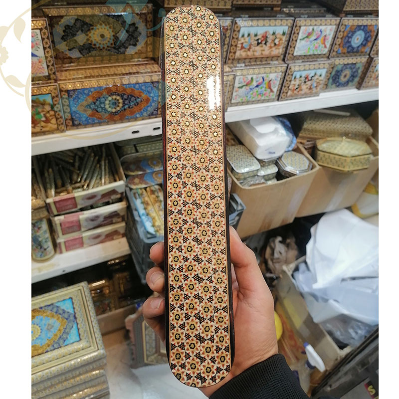جنس قلمدان از چوب و خاتم با کیفیت اصفهان است. بر روی قلمدان خاتم کاری، نقاشی مینیاتور کشیده شده تا جذابیت بیشتری به محصول دهد. ابعاد قلمدان خاتم کاری اصفهان 5در30سانتی متر است. قلمدان خوشنویسی برای نگهداری انواع قلم،خودکار و اشیاء با ارزش انجام می گردد.داخل این قلمدان ها مخمل می باشد. طرح مورد نظر خودتون رو قبل از سفارش حتما استعلام بگیرید و با اطمینان خرید کنید.
