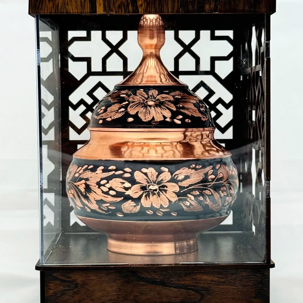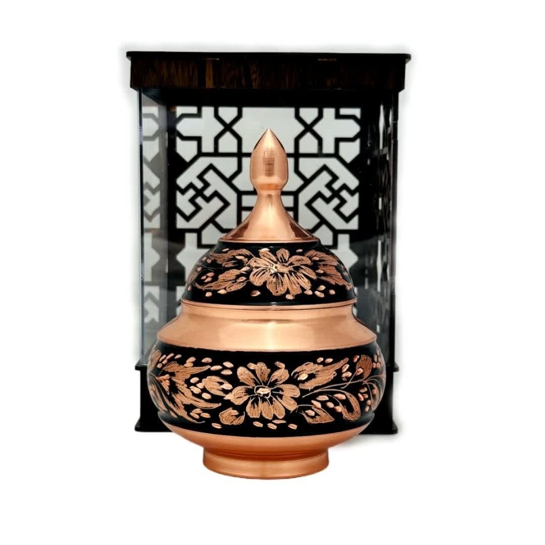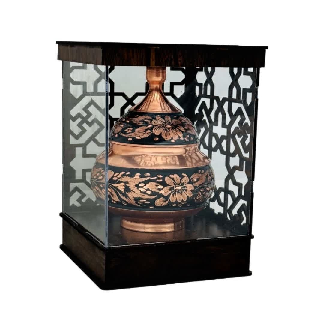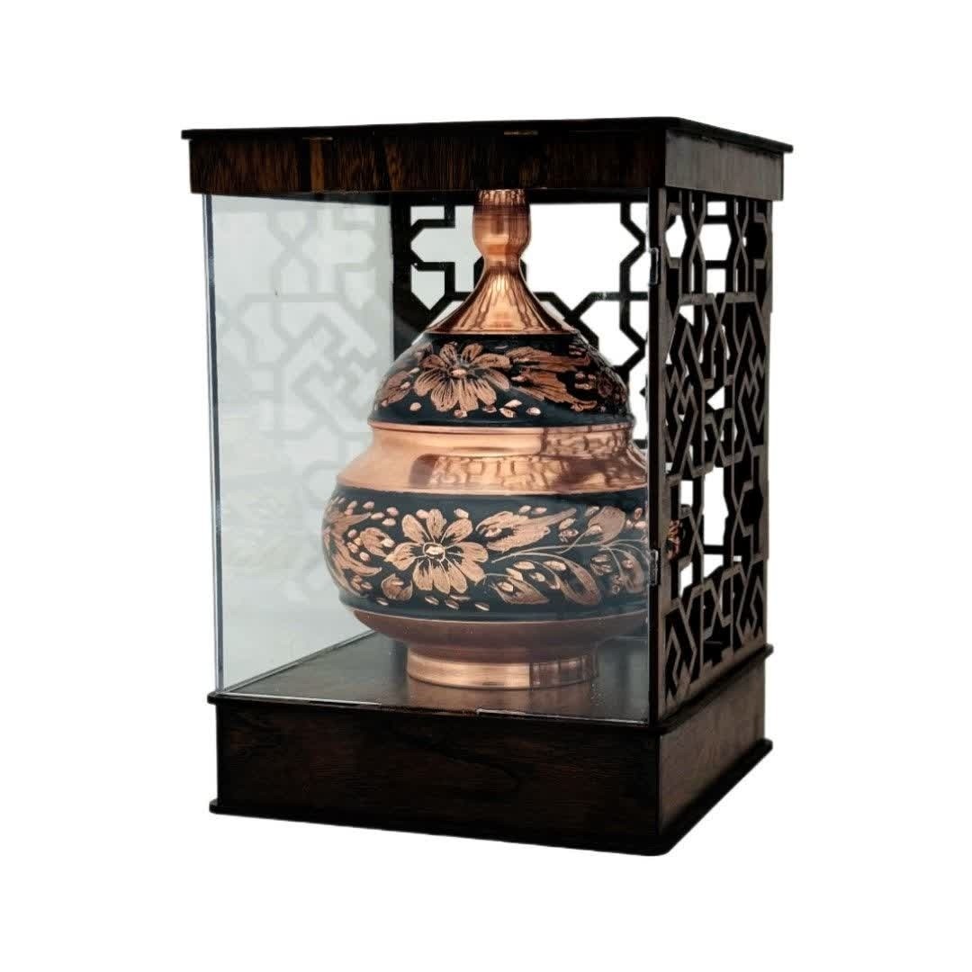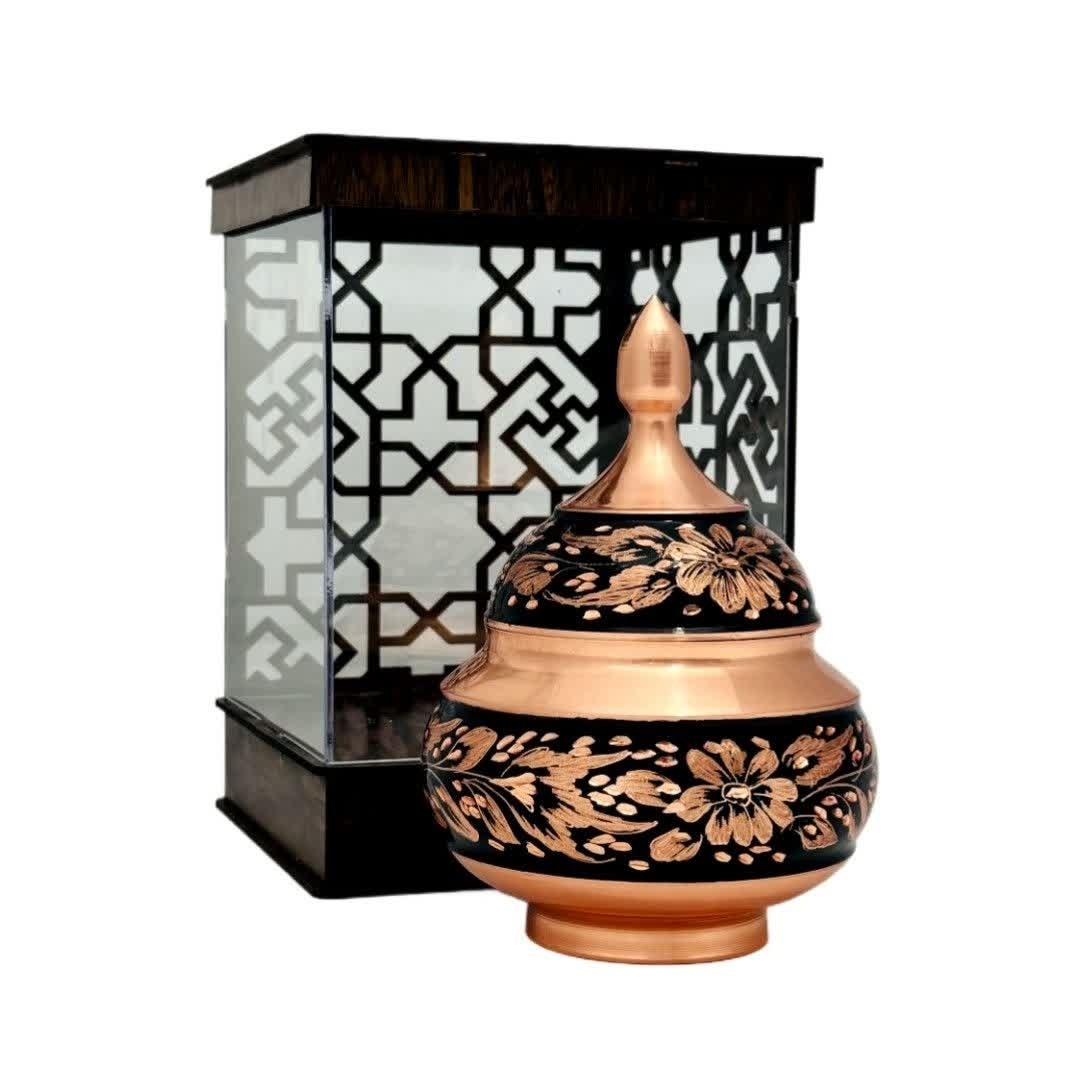 قندان مسی الماس تراش به همراه جعبه مشبک