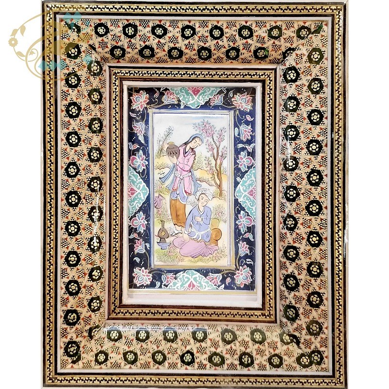 ☑️ جنس قاب از چوب و خاتم کاری است که به دست هنرمندان خاتم کار و نقاش کار شده است. ☑️این تابلو ها اثر دست هنرمندان اصفهان می باشد و نقوش زیبایی با دقت و مهارت خاصی بر روی آن ایجاد شده است. ☑️قیمت تابلو ها با توجه به ظرافت و هنر به کار رفته و همچنین مدل قاب استفاده شده و سایز آنهامتغیر است. ☑️سفارش انواع قاب های نقاشی با سایز دلخواه و سفارشی شما به صورت عمده ایی و خرده فروشی و با توجه به قیمت و بودجه شما مهیا می گردد .