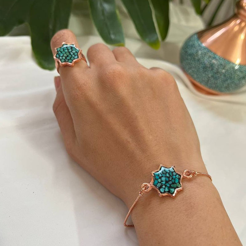 زیورآلات مسی از فواید زیادی برخوردار است. می توان در کنار زیبایی، از خواص سلامتی آن بهره مند شد. سنگ فیروزه اصل نیز خواصی برای بدن دارد. در نتیجه زیورآلات فیروزه کوب مسی یک هدیه سالم محسوب می شود. بسیار با کیفیت مس ساخته می شود. این دستبند مسی یک پیشنهاد عالی برای خانم های با سلیقه است. با روکش نانو و بدون حساسیت می باشد. ضدآب بوده و سیاه نمی شود. خواص زیورآلات مسی عبارتنداز: آرامش اعصاب بهبود گردش خون و سرحالی تامین زینک و منیزیم