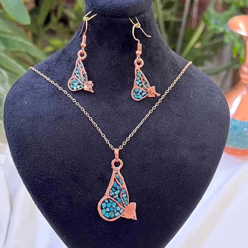 خانه / صنایع فلزی / مس و فیروزه کوبی / زیورآلات فیروزه کوبی / نیم ست زیورآلات مسی فیروزه کوبی مدل بال فرشته