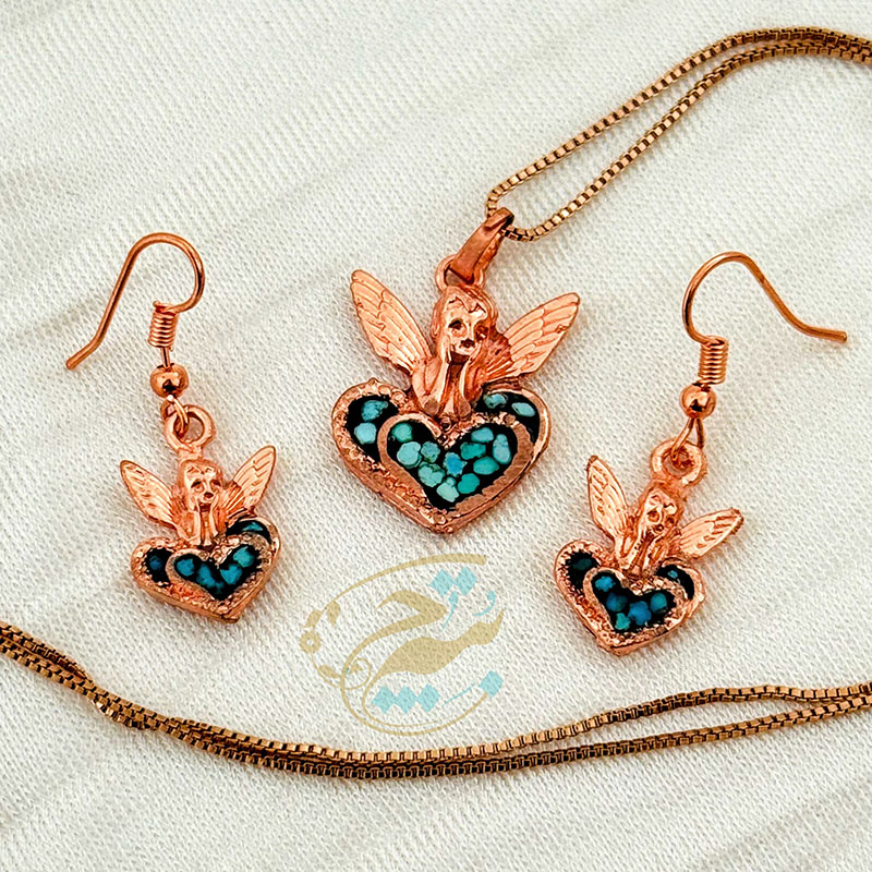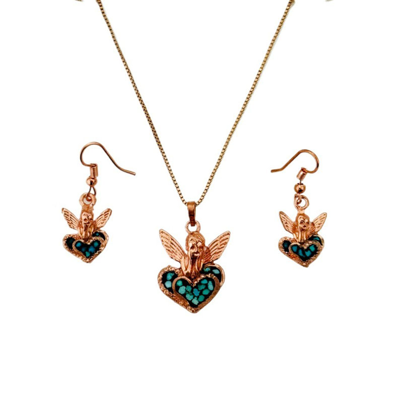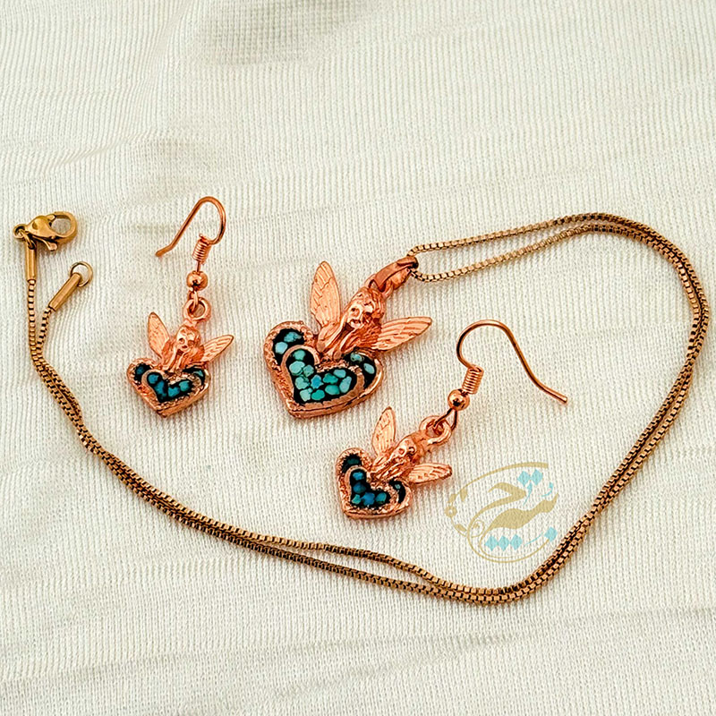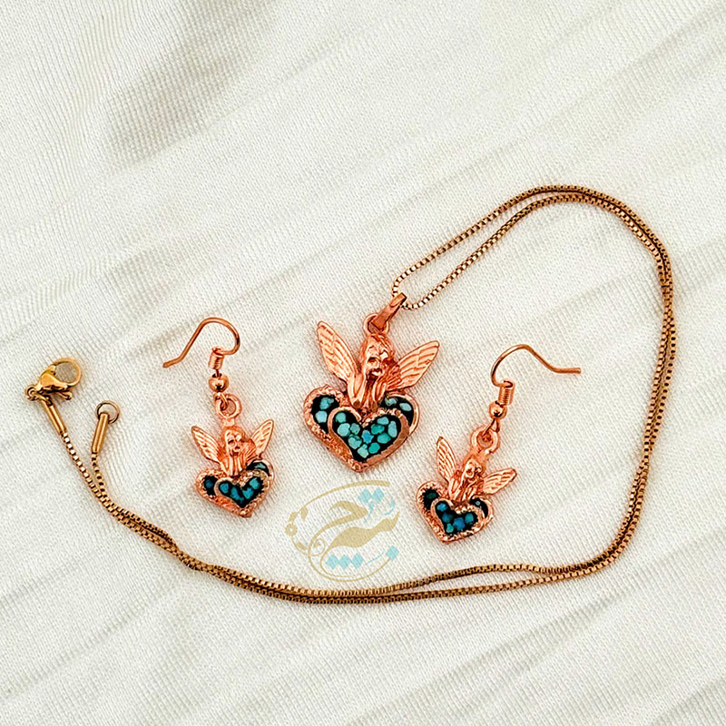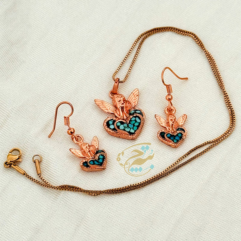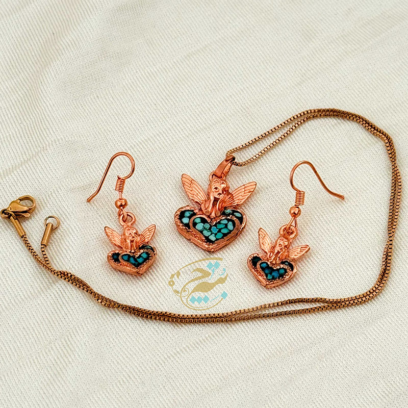 ست زیورآلات مسی فیروزه کوبی مدل فرشته آسمانی
