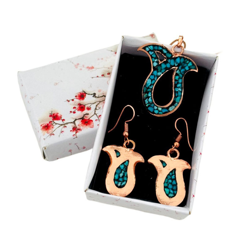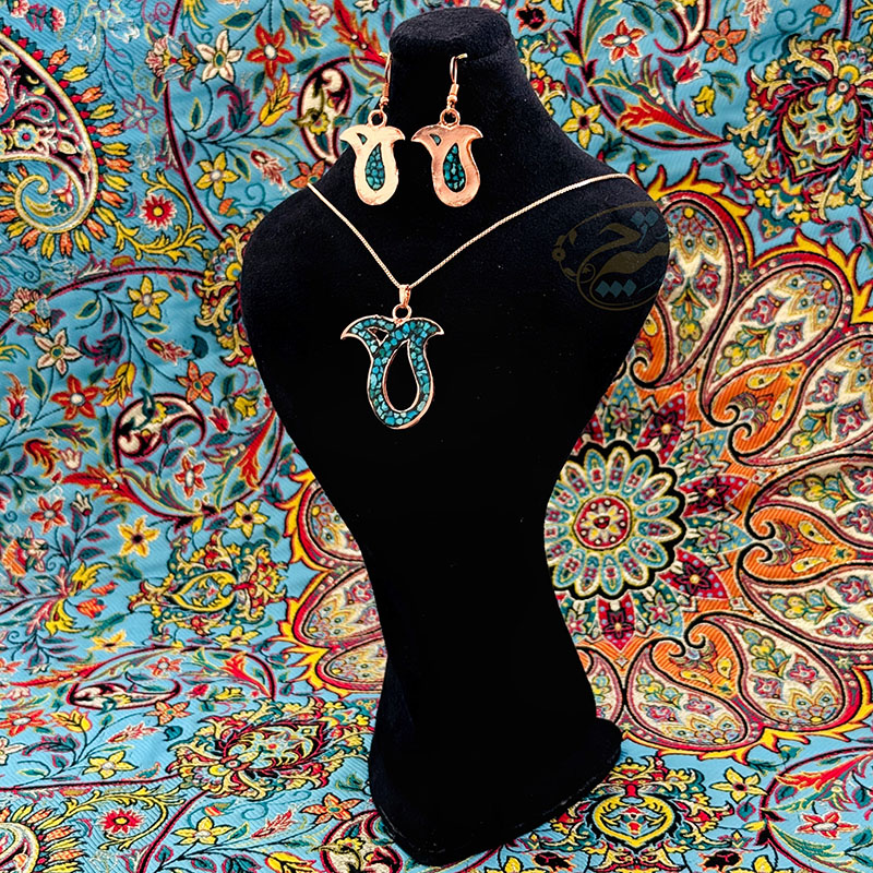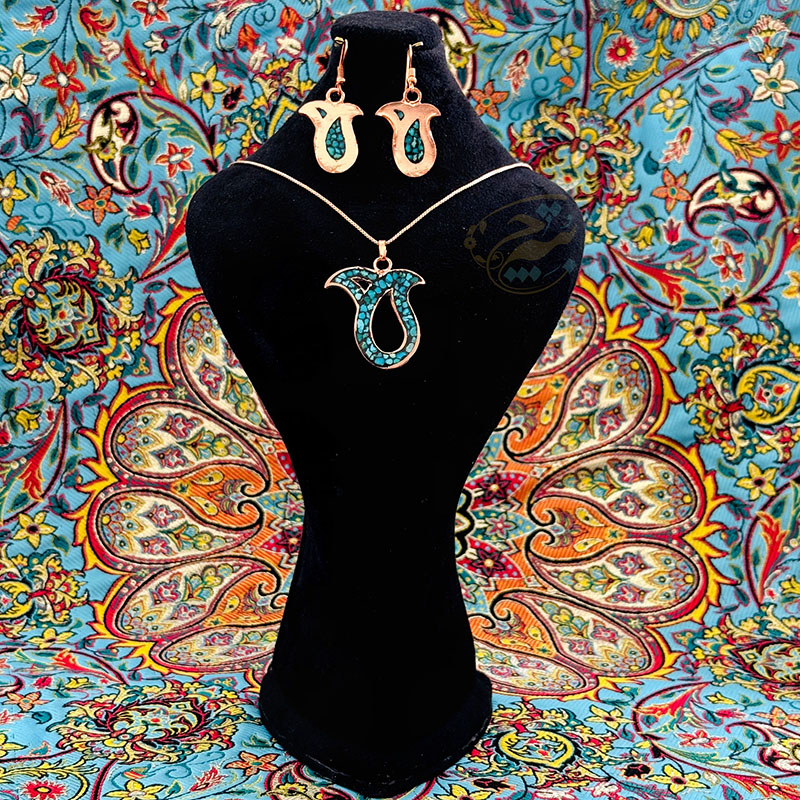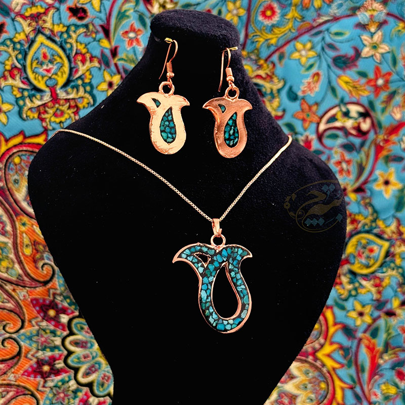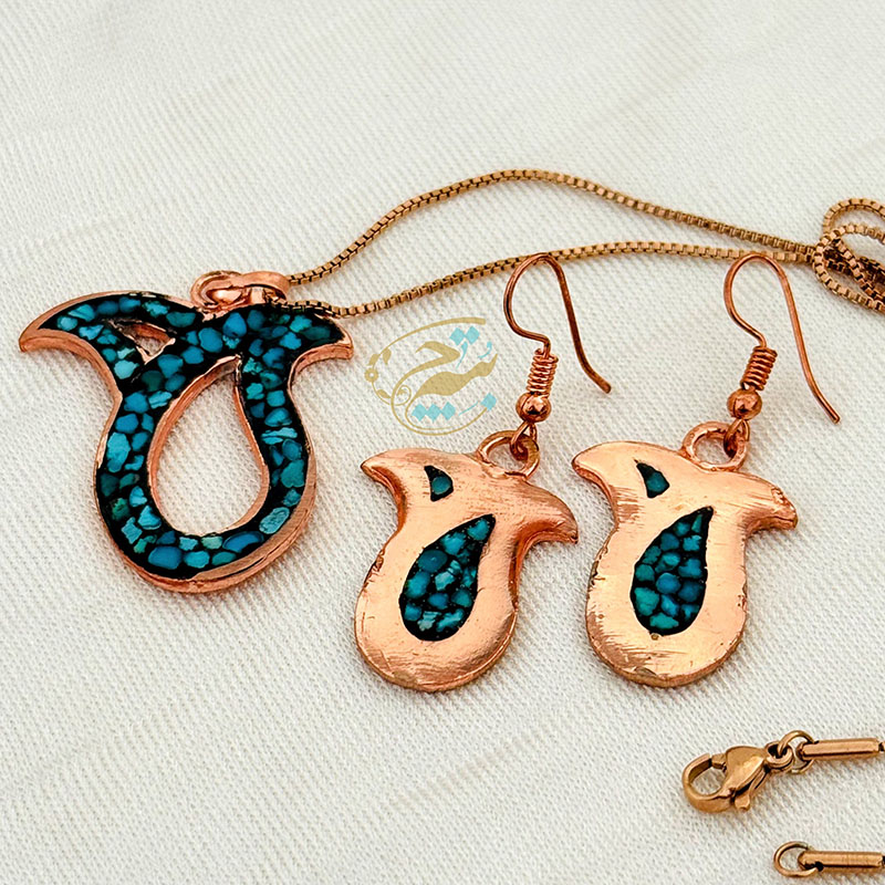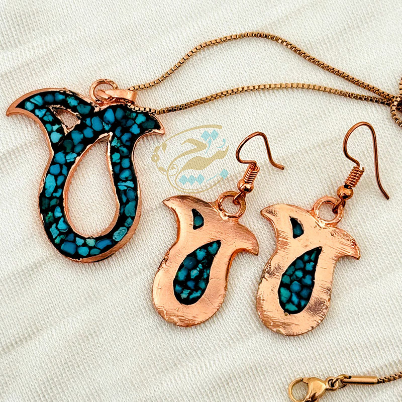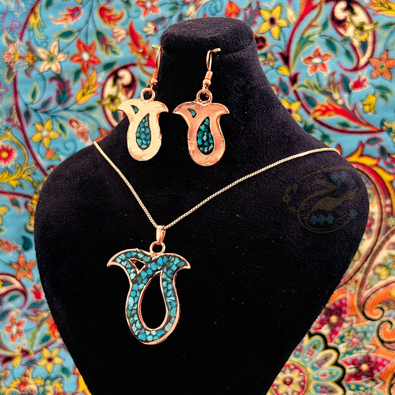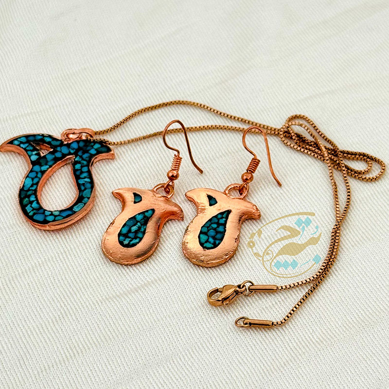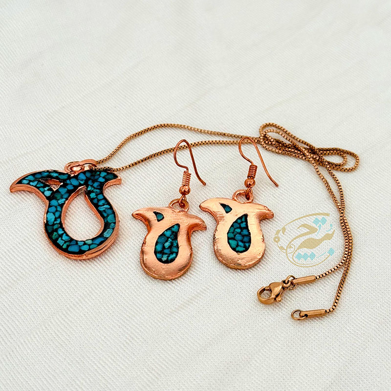 نیم ست زیورآلات مسی فیروزه کوبی مدل زندگی