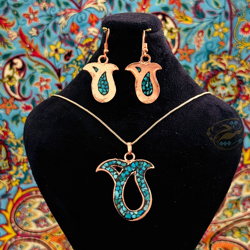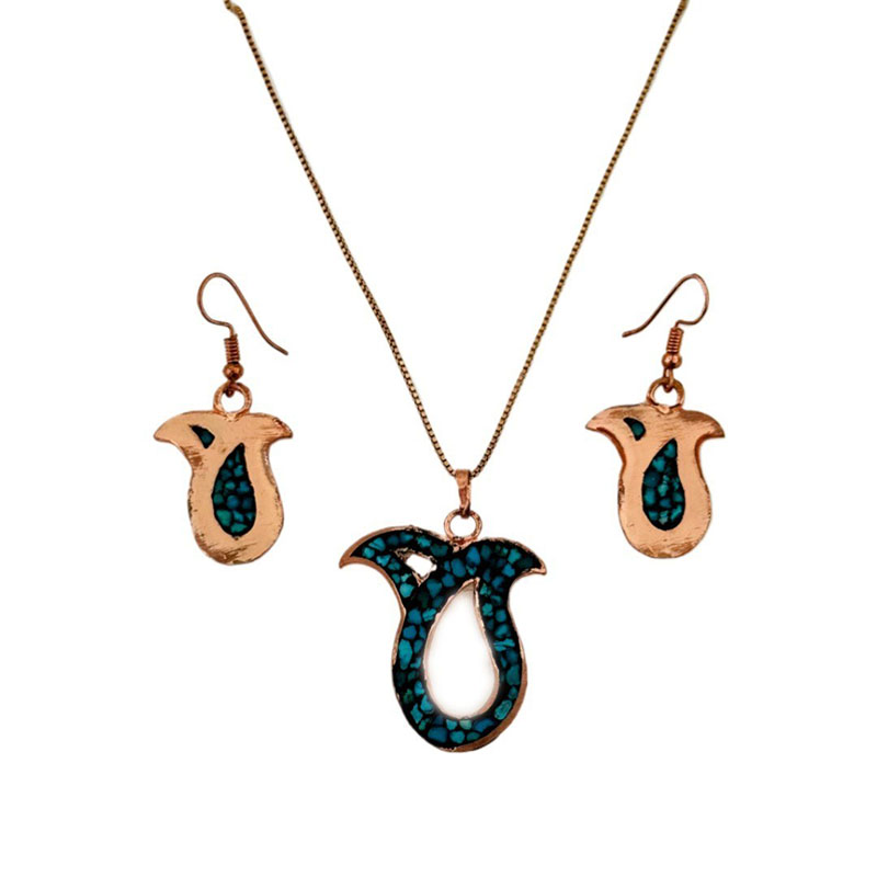 ست زیورآلات مسی فیروزه کوبی مدل گلایل