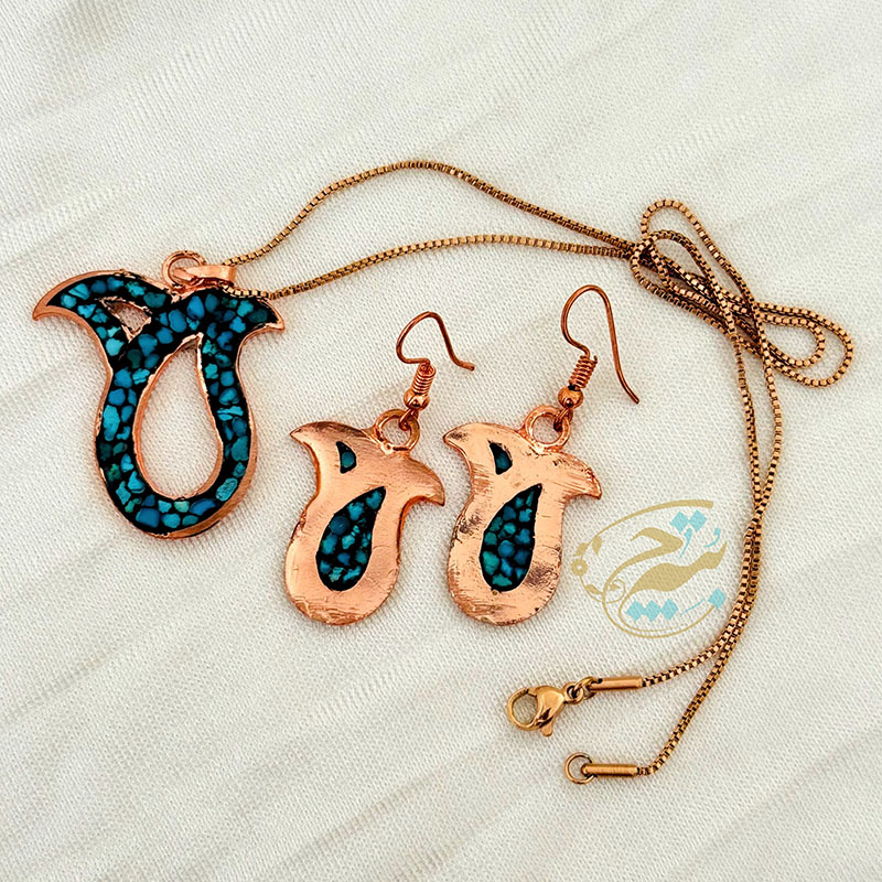 خانه / صنایع فلزی / مس و فیروزه کوبی / زیورآلات فیروزه کوبی / نیم ست زیورآلات مسی فیروزه کوبی مدل 2