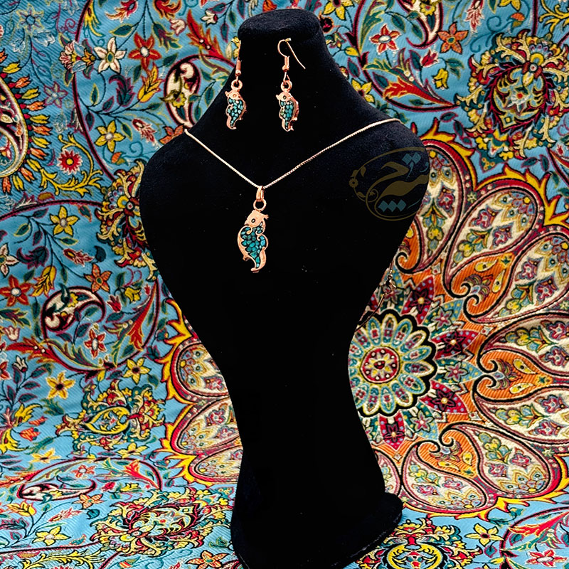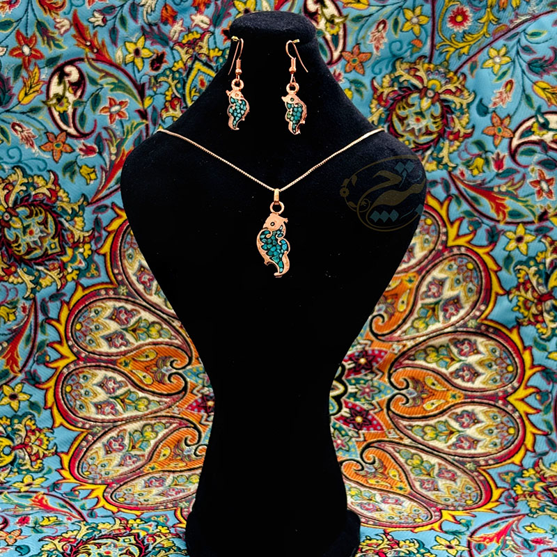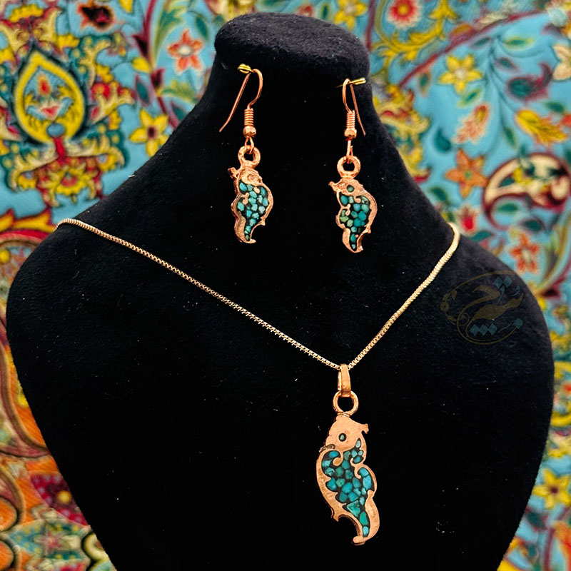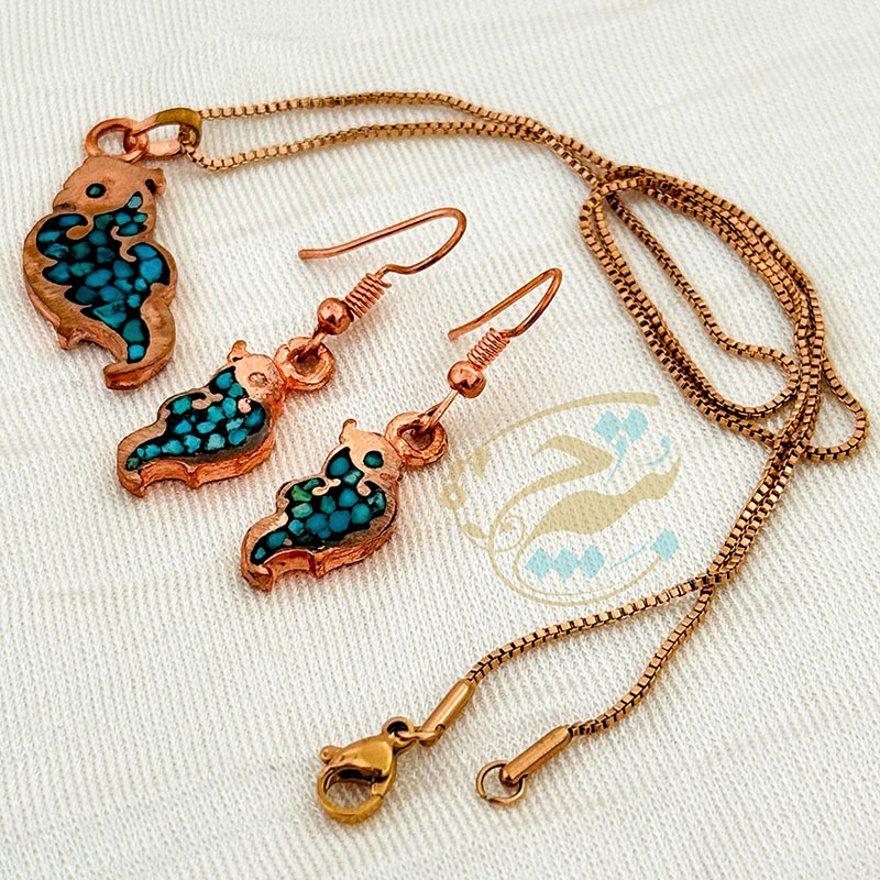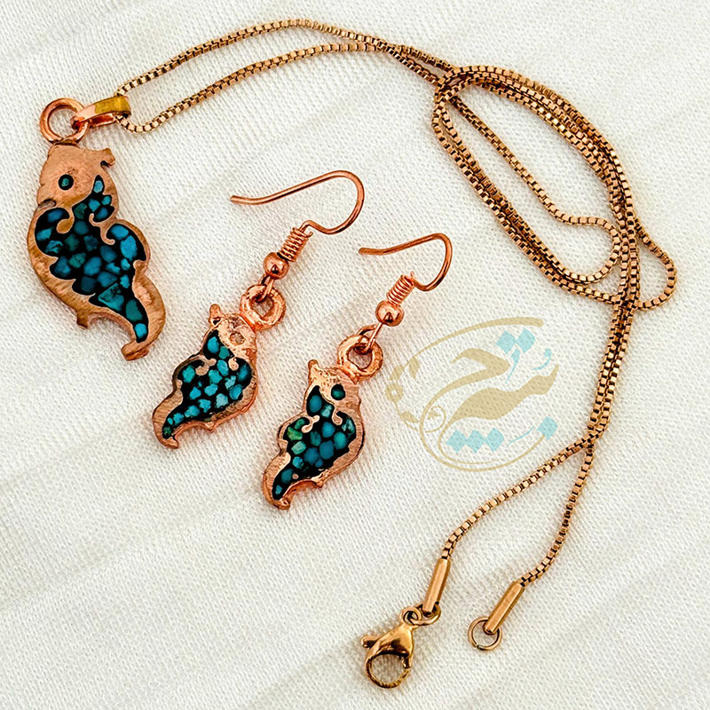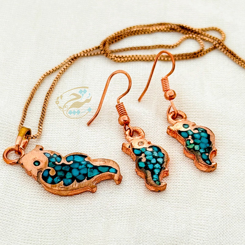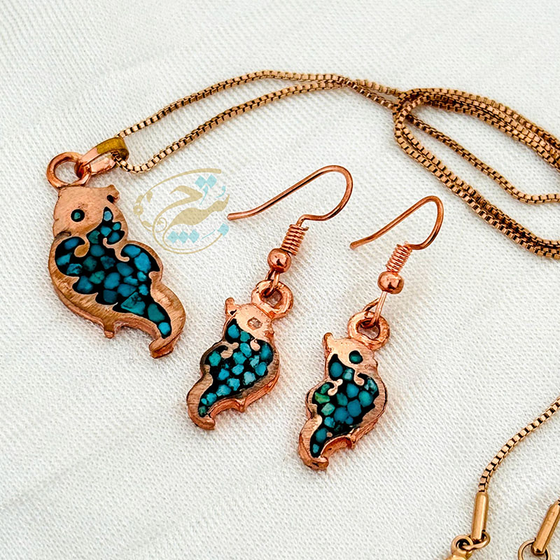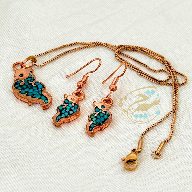 خانه / صنایع فلزی / مس و فیروزه کوبی / زیورآلات فیروزه کوبی / نیم ست زیورآلات مسی فیروزه کوبی مدل 5