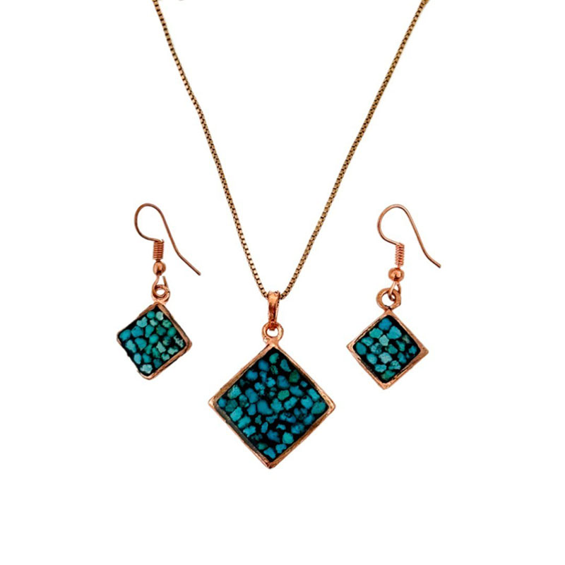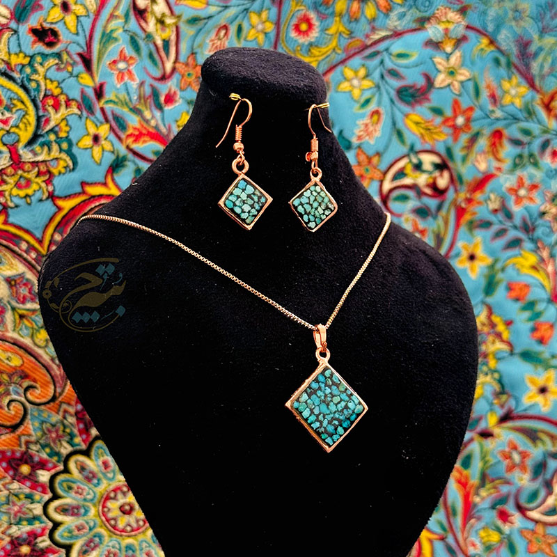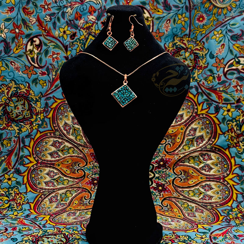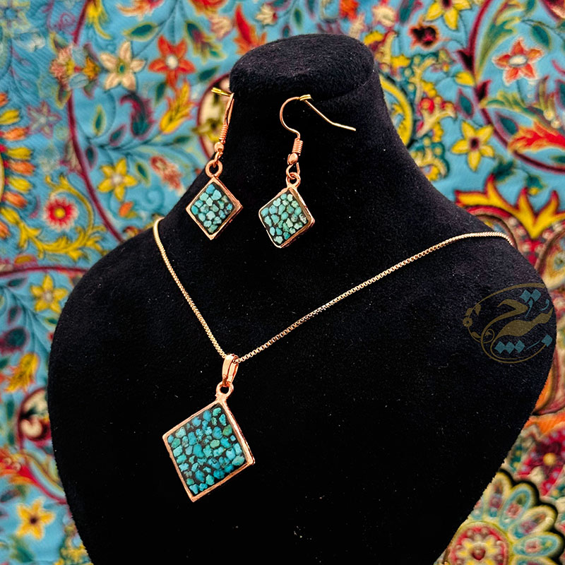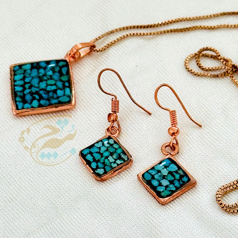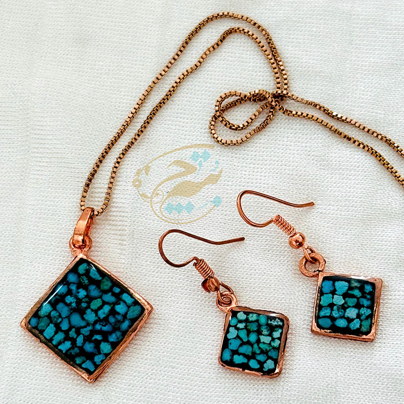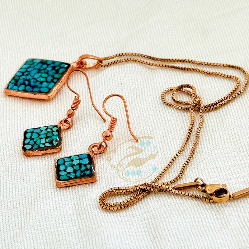 خانه / صنایع فلزی / مس و فیروزه کوبی / زیورآلات فیروزه کوبی / نیم ست زیورآلات مسی فیروزه کوبی مدل 6