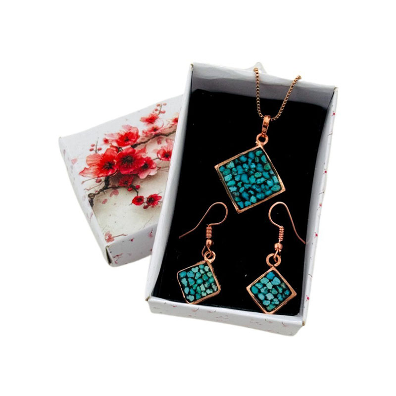 نیم ست زیورآلات مسی فیروزه کوبی مدل 3