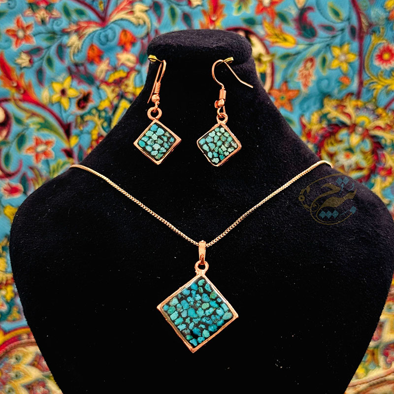 نیم ست زیورآلات مسی فیروزه کوبی مدل سه