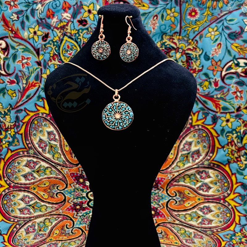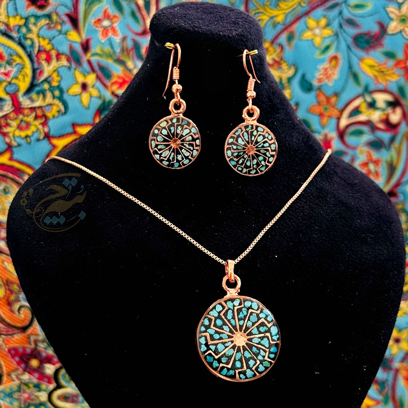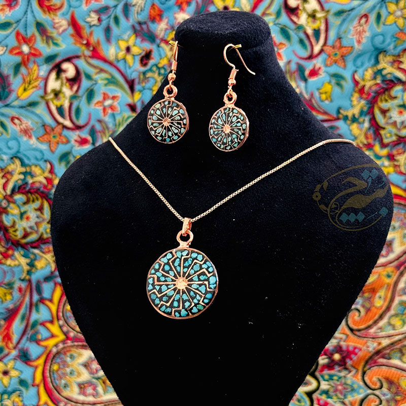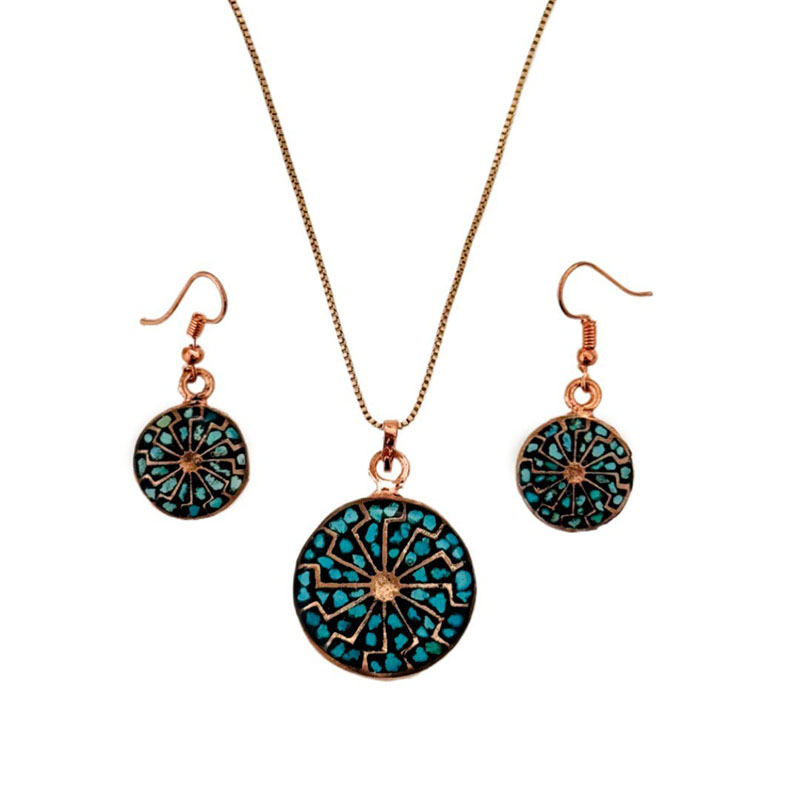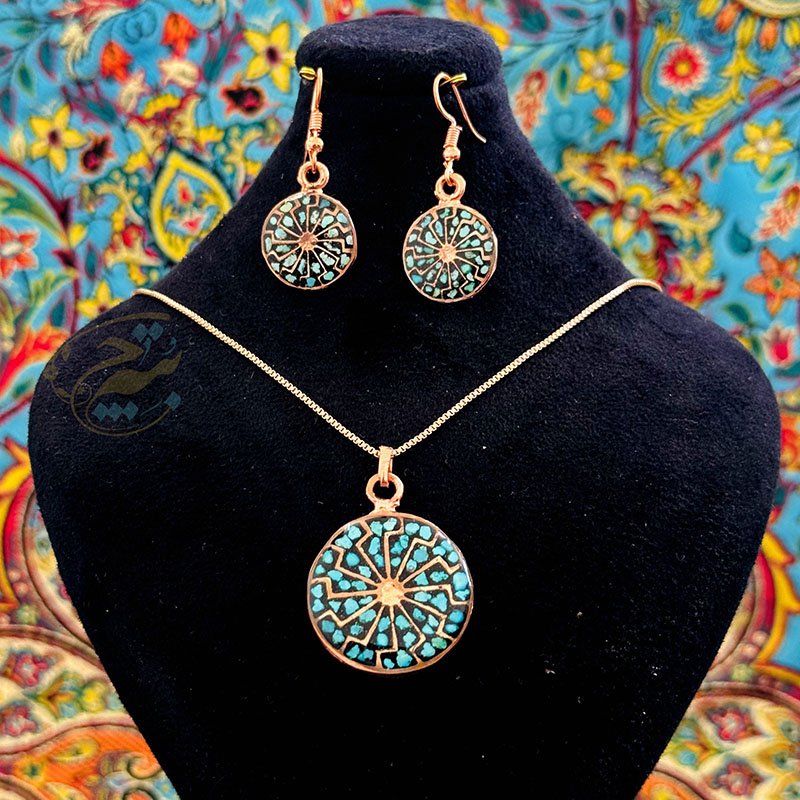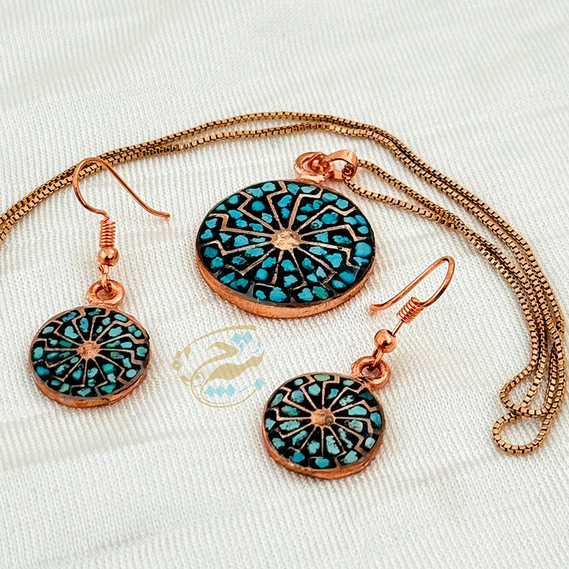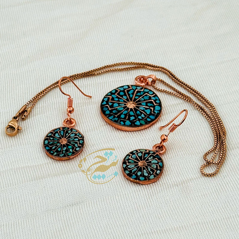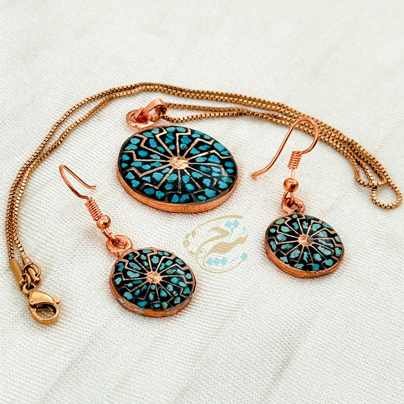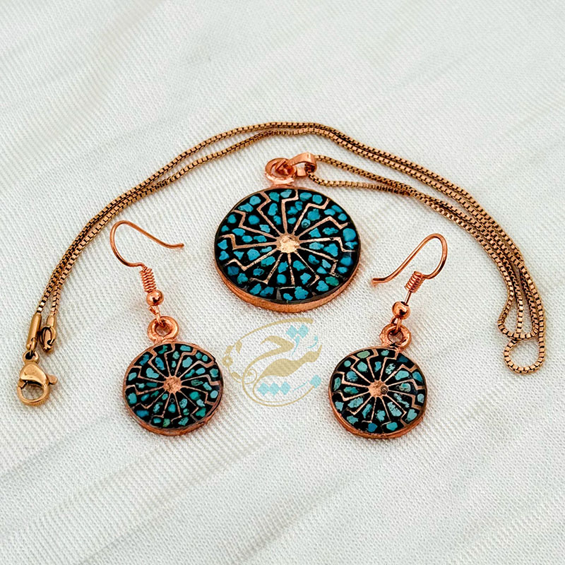 خانه / صنایع فلزی / مس و فیروزه کوبی / زیورآلات فیروزه کوبی / نیم ست زیورآلات مسی فیروزه کوبی مدل 9