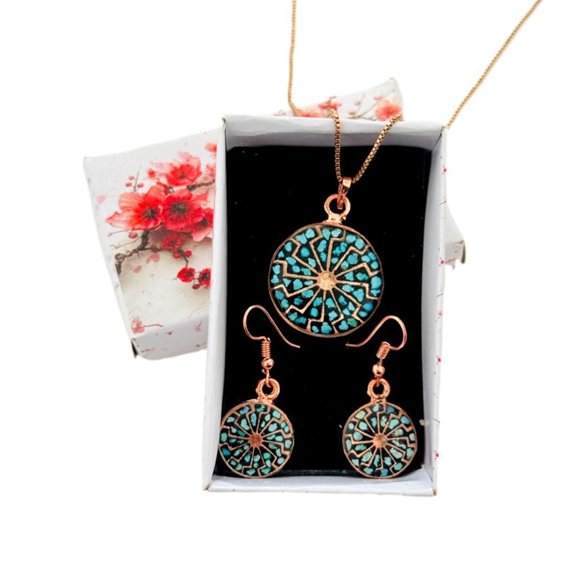 نیم ست زیورآلات مسی فیروزه کوبی مدل 9