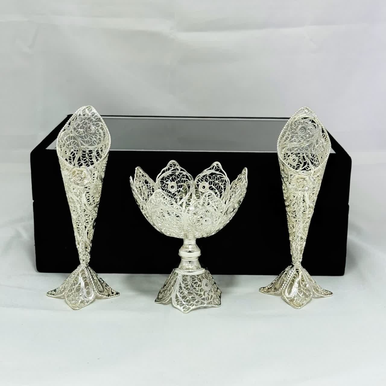 پک صنایع دستی ظروف ملیله کاری گلدان و آجیل خوری
