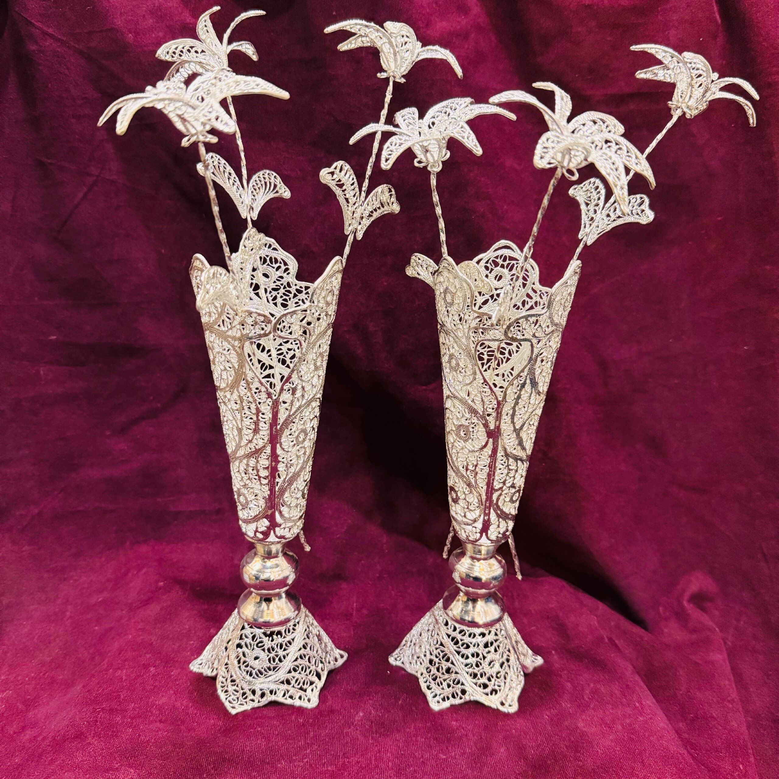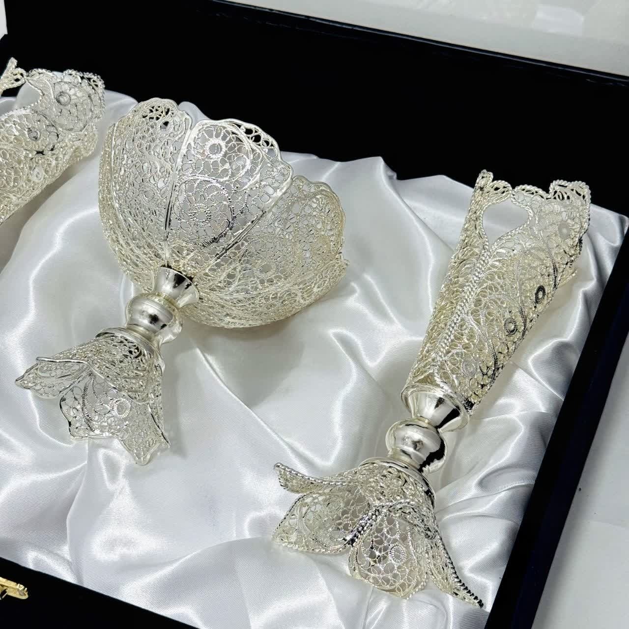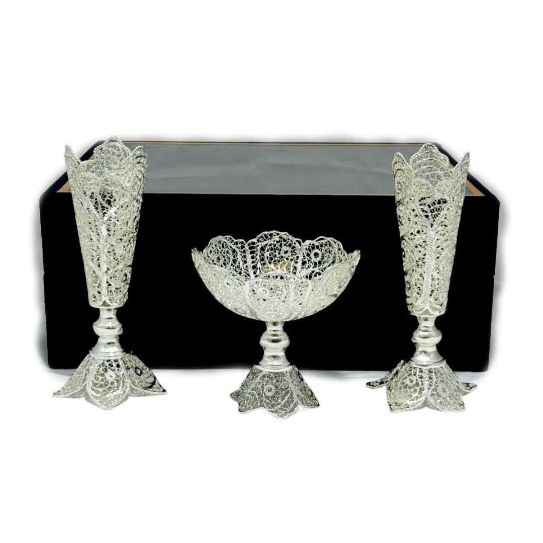 نکته : قیمت برای یک جفت گلدان و قندان و جعبه میباشد. ملیلهکاری، هنر ظریف و زیبای ساخت اشیاء تزئینی از مفتولهای نازک مس با روکش نقره است که ریشه در تاریخ و فرهنگ اصفهان دارد. محصولات ملیلهکاری با طرحهای پیچیده و چشمنواز، جلوهای خاص به دکوراسیون منزل میبخشند و میتوانند به عنوان هدیهای ارزشمند مورد استفاده قرار گیرند. کیفیت ملیلهکاری تولیدی بُته چی به دلیل استفاده از مواد اولیه مرغوب و دقت بالای هنرمندان، از کیفیت بالایی برخوردار است و میتواند سالها زیبایی خود را حفظ کند. با خرید گلدان ملیله کاری اصفهان، شما نه تنها یک شیء زیبا و دکوری را به خانه خود اضافه میکنید، بلکه از هنر و هنرمندان ایرانی نیز حمایت میکنید. به علت دست ساز بودن تمامی محصولات امکان اختلاف سایز اندکی وجود دارد.