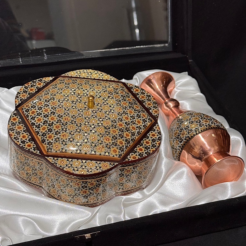 پک هدیه گلدان و شکلات خوری خاتم کاری