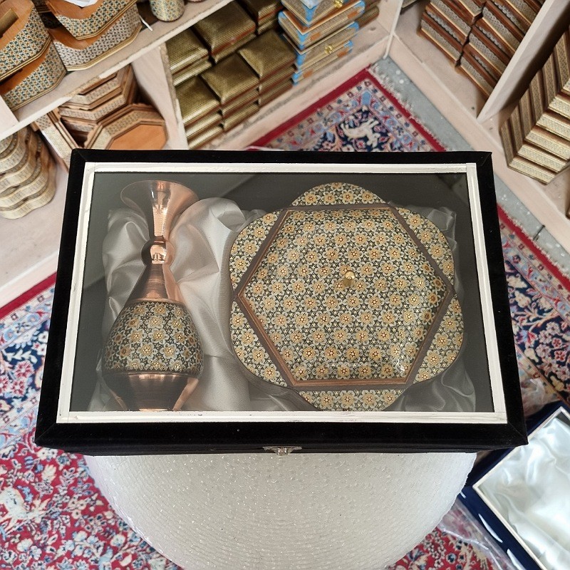 ست هدیه هدیه اداری ترمه و گلدان مس و خاتم جفتی