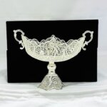 ملیلهکاری، هنر ظریف و زیبای ساخت اشیاء تزئینی از مفتولهای نازک مس با روکش نقره است که ریشه در تاریخ و فرهنگ اصفهان دارد. محصولات ملیلهکاری با طرحهای پیچیده و چشمنواز، جلوهای خاص به دکوراسیون منزل میبخشند و میتوانند به عنوان هدیهای ارزشمند مورد استفاده قرار گیرند. کیفیت ملیلهکاری تولیدی بُته چی به دلیل استفاده از مواد اولیه مرغوب و دقت بالای هنرمندان، از کیفیت بالایی برخوردار است و میتواند سالها زیبایی خود را حفظ کند. ساخت کشکول ملیلهکاری نیاز به مهارت و دقت بالایی دارد. در ابتدا، فلز مورد استفاده برای ساخت کشکول به رشتههای نازک و بسیار دقیق تبدیل میشود. سپس این رشتهها با دستان هنرمند به اشکال پیچیده و ظریف بافته میشوند. این رشتههای فلزی پس از بافتن، به شکل یک کشکول با جزئیات دقیق و ظریف درمیآیند که اغلب با الگوهای گل و گیاه یا طرحهای هندسی زینت داده میشوند. برای تکمیل کار، معمولاً کشکولها با استفاده از سنگهای قیمتی یا جواهرات دیگر تزئین میشوند تا جلوهای خاص و نفیس پیدا کنند. با خرید ظروف ملیله کاری اصفهان، شما نه تنها یک شیء زیبا و دکوری را به خانه خود اضافه میکنید، بلکه از هنر و هنرمندان ایرانی نیز حمایت میکنید. به علت دست ساز بودن تمامی محصولات امکان اختلاف سایز اندکی وجود دارد.