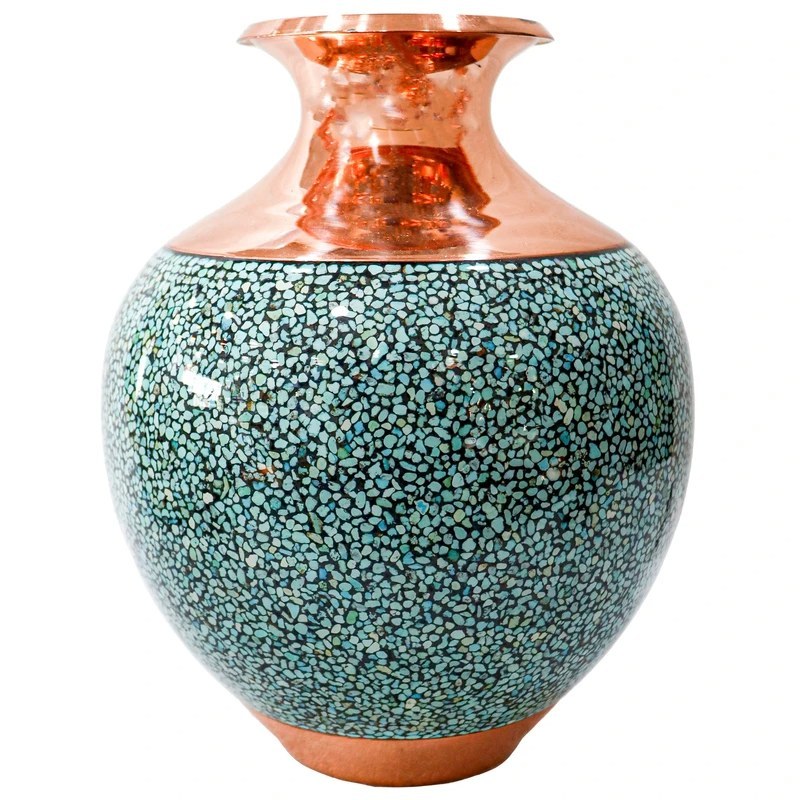 دسته: صنایع فلزی, گلدان فیروزه کوبی, مس و فیروزه کوبی