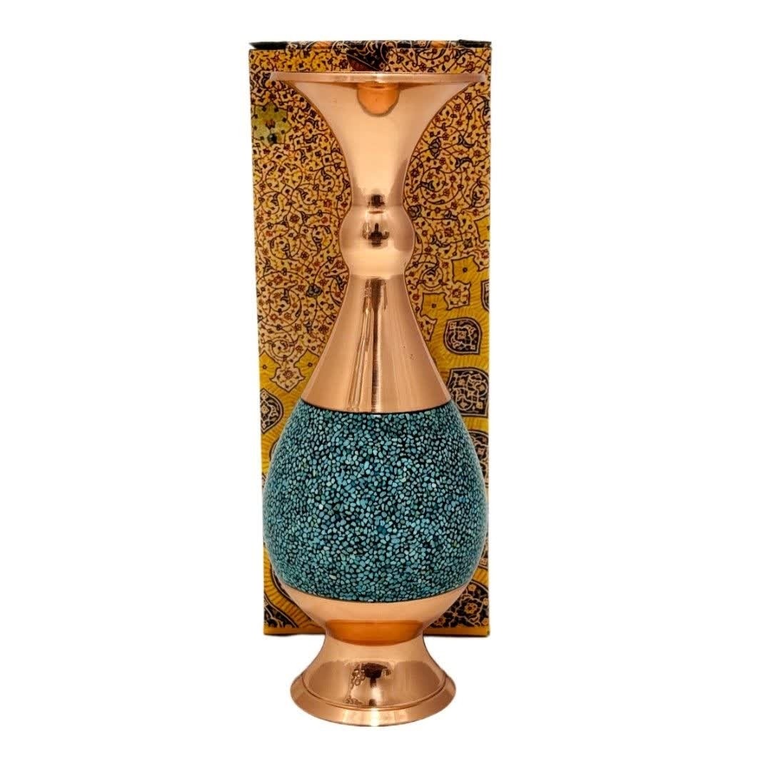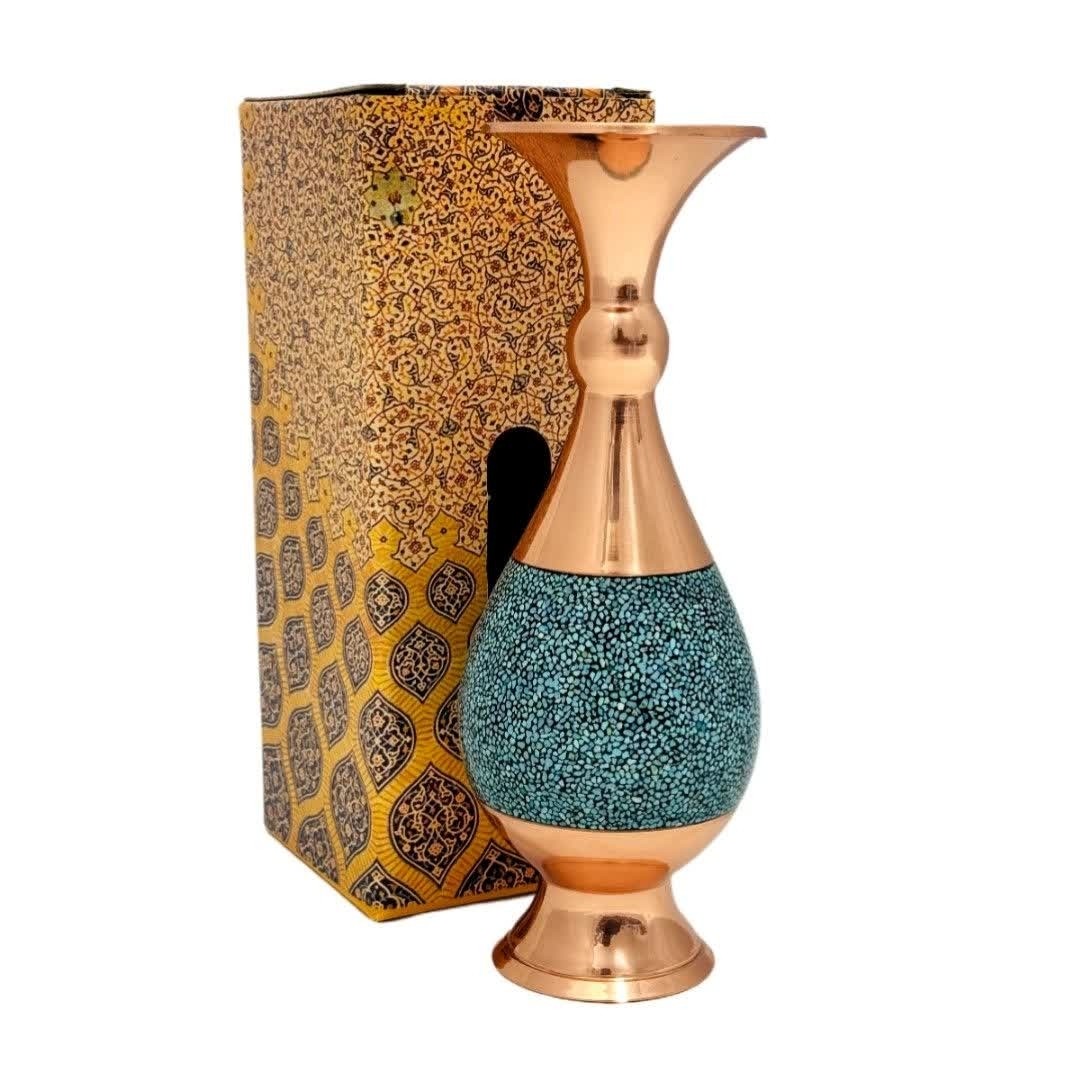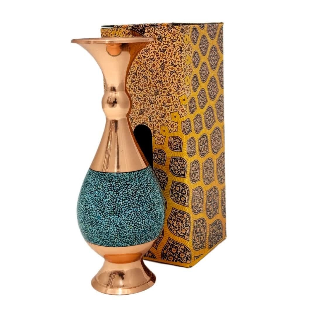 خانه / صنایع فلزی / مس و فیروزه کوبی / گلدان فیروزه کوبی / گلدان فیروزه کوبی 20 سانتی با جعبه سنتی