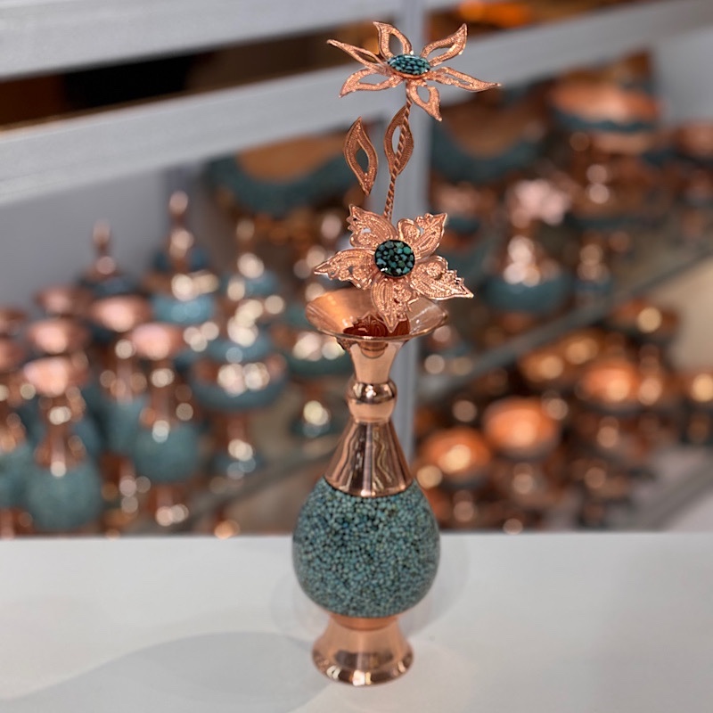 دسته: صنایع فلزی, گلدان فیروزه کوبی, مس و فیروزه کوبی