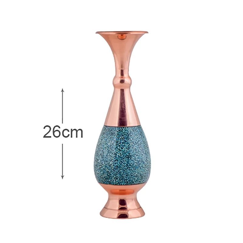 این کار نفیس فیروزه کوبی دارای پوششی از پلی استر است که علاوه بر پوششدهی مناسب سطح مس و جلوگیری از اکسید و سیاه شدن، مقاومت آن را نیز بالا برده است.از آنجاییکه پرداخت نهایی در تولید این کار ماهرانه و با دقت صورت گرفته،سطح مس و فیروزه براق، شفاف و درخشان است. فیروزه کوبی : فیروزه کوبی از صنایع دستی است و با نشاندن قطعه های کوچک سنگ فیروزه به حالت موزاییکی بر سطح ظرف ها ، زیورآلات و اشیای تزئینی ( از پایه هایی به جنس های مسی ، برنجی، نقره، ورشویی ویا برنزی) ساخته می شود . هر چه ظرف فیروزه کوبی شده پر کارتر و منظم تر باشد و فاصله کمتری بین قطعات فیروزه باشد ، ارزش هنری آن بیشتر است . امروزه اصفهان مرکزاین هنر است .