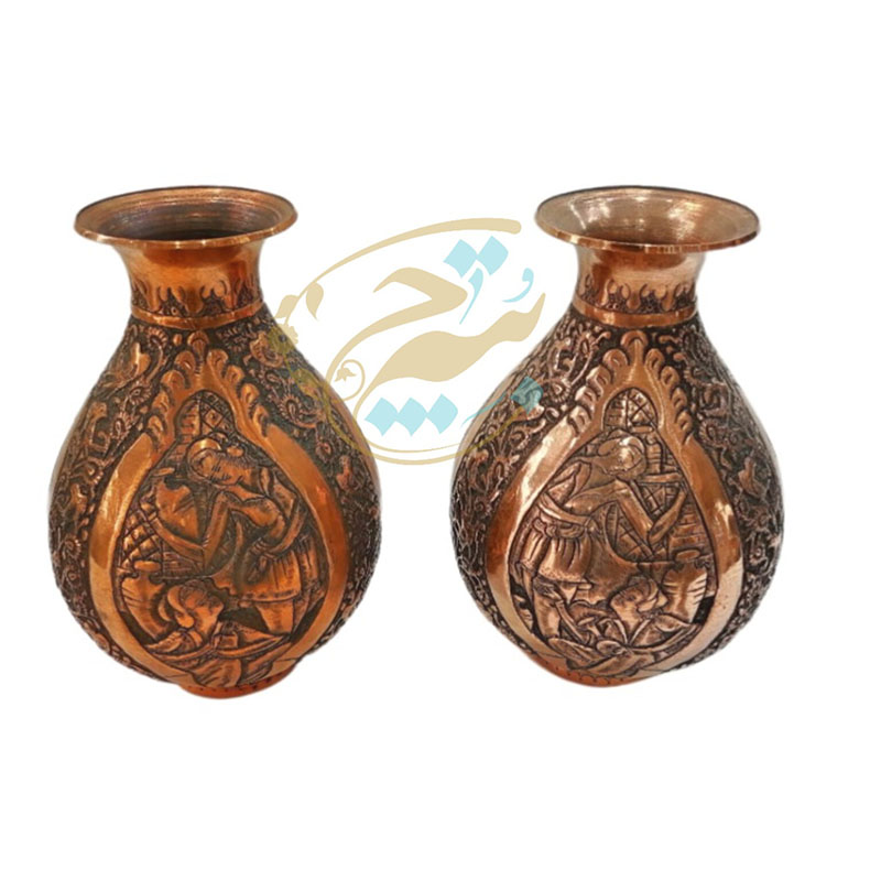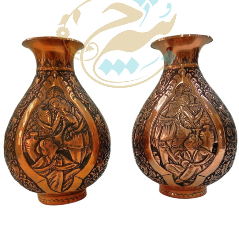 ارتفاع کلی این گلدان زیبا حدود 17سانتی متر و ابعاد شکمی در بیشترین حالت حدود 10.5سانتی متر می باشد.(به خاطر دست ساز بودن تمامی محصولات امکان اختلاف سایز اندکی وجود دارد. ) نکته: قیمت درج شده برای یک جفت گلدان می باشد ولی امکان سفارش تکی هم برای شما وجود دارد. قلم کار شده بسیار ریز میباشد و دارای اصالت هنری و امضای استاد کار است. (باکارهای بازاری سنجیده نشود.) نقوش گل و مرغ یا چهره که با ظرافت تمام روی سطح این گلدان زیبا اجرا شده‌اند، در کنار رنگ زیبای زمینه و خلاقیت هنرمند سازنده در استفاده از نقوش ایرانی، این ظرف قلمزنی را به اثری خاص و جالب‌توجه تبدیل کرده است. این گلدان با ظاهر زیبایی که دارد، می‌تواند در دورهمی ها و کنفرانس ها بسیار به کارتان آید و شما را به میزبانی باسلیقه تبدیل کند. گلدان قلم‍زنی را هنرمندان اصفهانی به نام طراحی و اجرا کرده اند. نقوش روی زمینه‌ای از جنس فلز مس طراحی و با قلم‌های بسیار ظریف ایجاد شده‌اند. ارتفاع گلدان در حدود 17 سانتی‌متر است و به دلیل استفاده از فلز در ساخت، وزن 400گرمی آن قابل‌توجیه است. این گلدان اثری دست‌ساز و زیباست که با طرح‌های اصیل و ایرانی خود می‌تواند به خودی خود فضای خانه‌تان را تحت‌تاثیر قرار دهد. قلمزنی هنر اجرای نقوش بر اشیا فلزی است. هنری که در اجرای آن ظرافت، دقت و حوصله از مهم‌ترین ملزومات هستند. نقش گل و مرغ و چهره همچنان به‌عنوان رایج‌ترین نقوش هنر قلمزنی روی بسیاری از آثار فلزی اجرا می‌شود و از محبوب‌ترین طرح‌هاست. شیوه‌ی کار در هنری قلمزنی به این صورت است که ابتدا هنرمند قلمزن طرحی را که باید اجرا شود، با مداد روی سطح فلز ترسیم می‌کند. در مرحله‌ی بعد داخل یا بیرون کار را با قیر مذاب پر می‌کنند و بعد از اینکه قیر سفت شد، با استفاده از چکش و قلم‌، شروع به اجرای طرح می‌کنند. ریختن قیر به منظور کج‌نشدن ظرف یا جلوگیری از شکستن آن بر اثر ضربات چکش و قلم انجام می‌شود. قلم‌ها انواع گوناگون دارند و بر اساس طرح و نحوه‌ی کار به شکل‌های مختلف ساخته می‌شوند. هنرمندان چیره‌دست معمولا قلم‌های‌ مورداستفاده‌شان را بر اساس نوع نیازی که دارند، خودشان می‌سازند. ظروف یا صفحه‌‎های مسطح مسی یا برنجی رایج‌ترین زمینه‌ها برای اجرای هنر قلمزنی هستند و گاهی با لعابی از قلع پوشانده می‌شوند. لطفاً قبل از سفارش طرح گلدان مورد نظرتون رو انتخاب کنید در غیر اینصورت یکی از گلدان های زیبای تقریبا مشابه به صورت رندوم برای شما ارسال می شود. پس از دریافت محصول، حتما در حضور مامور پست آن را چک کنید، در غیر اینصورت هرگونه آسیب فیزیکی به محصول برعهده فروشگاه نمی باشد.