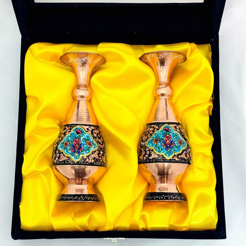ست هدیه جفت گلدان الماس تراش مسی، هدیه ای خاص برای دوس داران صنایع دستی اصفهان میباشد. جفت گلدان مسی الماس تراش طرح گل و مرغ ارتفاع 20 سانتیمتر به همراه جعبه 30در30 سانت ارائه شده است. در سایز های متنوع هم موجود است.