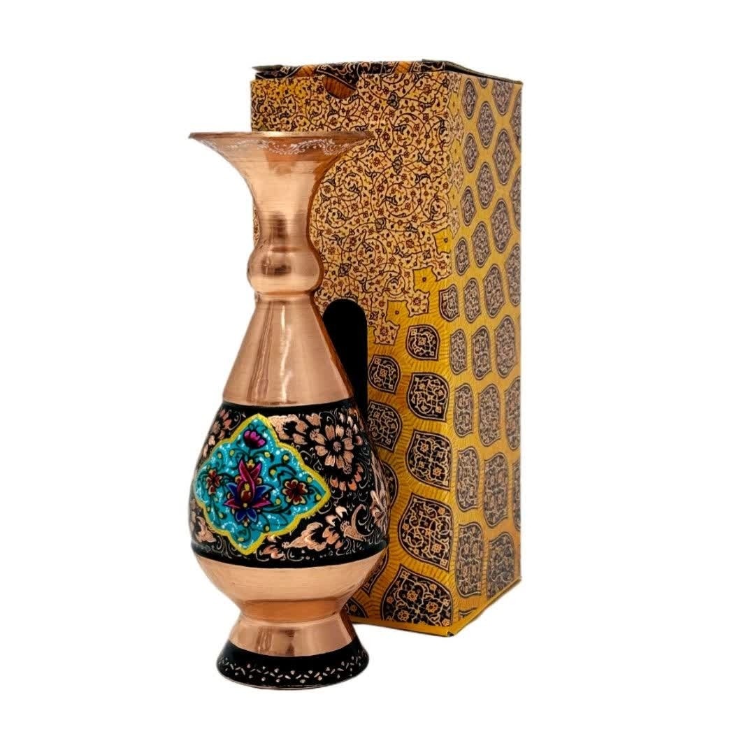 ست هدیه جفت گلدان الماس تراش مسی، هدیه ای خاص برای دوس داران صنایع دستی اصفهان میباشد. گلدان مسی الماس تراش طرح گل و مرغ ارتفاع 20 سانت ارائه شده است. در سایز های متنوع هم موجود است.