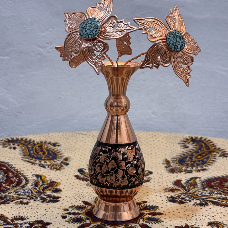 گلدان الماس تراش مسی، هدیه ای خاص برای دوس داران صنایع دستی اصفهان میباشد. گلدان مسی الماس تراش طرح گل و مرغ ارتفاع 16 سانت ارائه شده است. در سایز های متنوع هم موجود است.