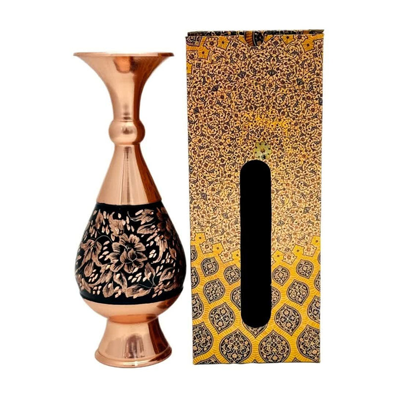 هدیه گلدان مسی الماس تراش 20 سانتی با جعبه مخمل
