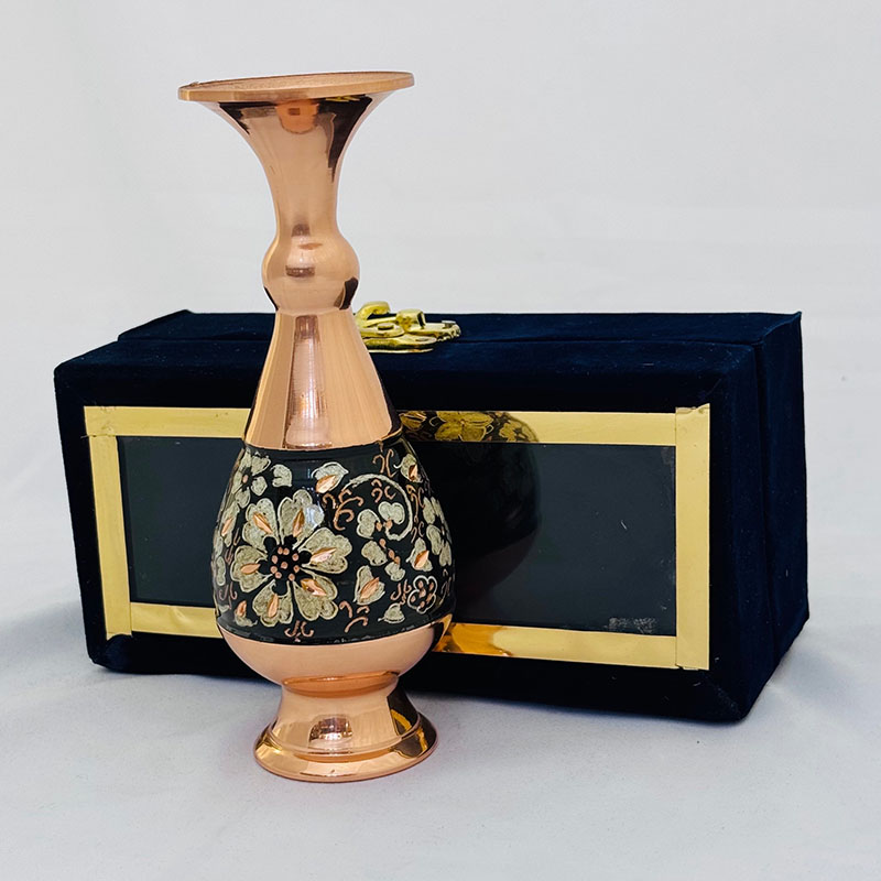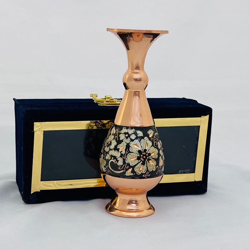 ست هدیه اداری ترمه و گلدان مس و فیروزه 20 با جعبه قلمکاری