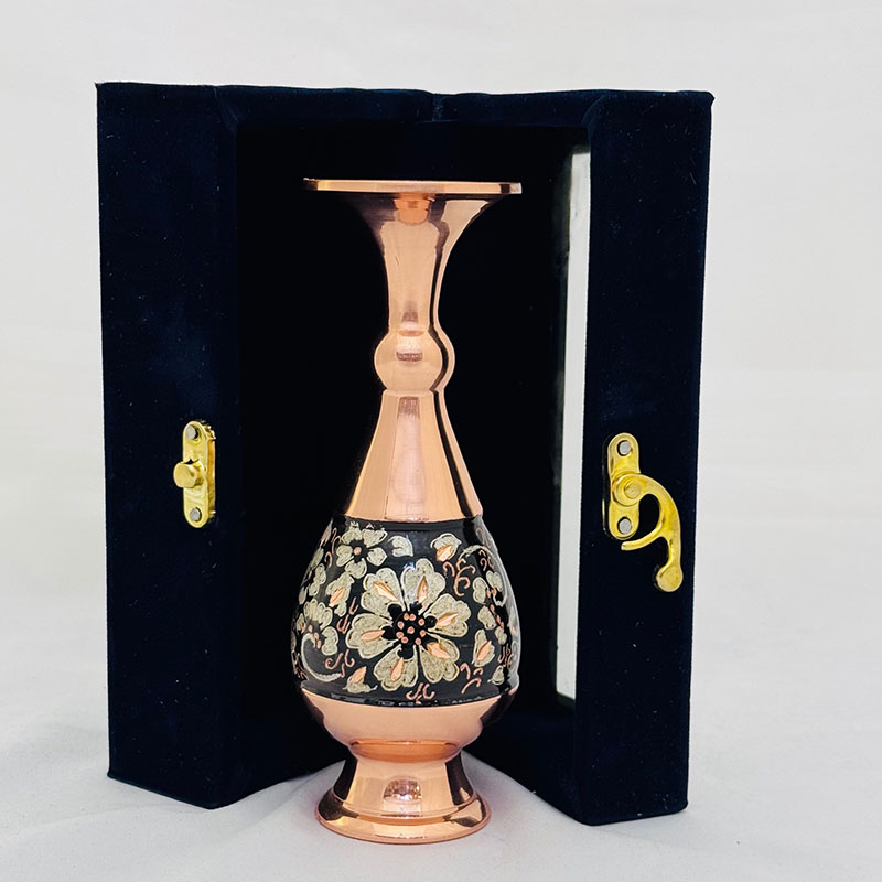 گلدان مسی الماس نقره 16 سانتی به همراه جعبه مخمل