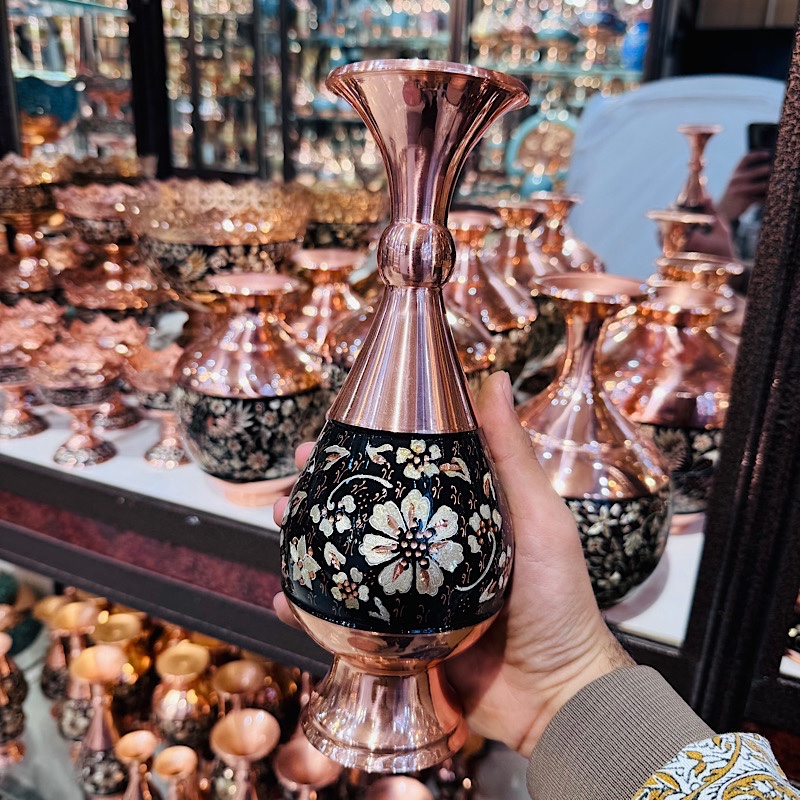 گلدان الماس تراش مسی، هدیه ای خاص برای دوس داران صنایع دستی اصفهان میباشد. گلدان مسی الماس تراش طرح گل و مرغ ارتفاع 25 سانت ارائه شده است. در سایز های متنوع هم موجود است.