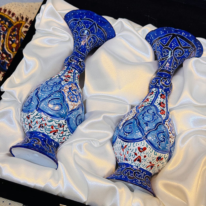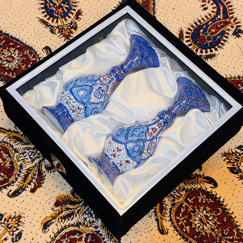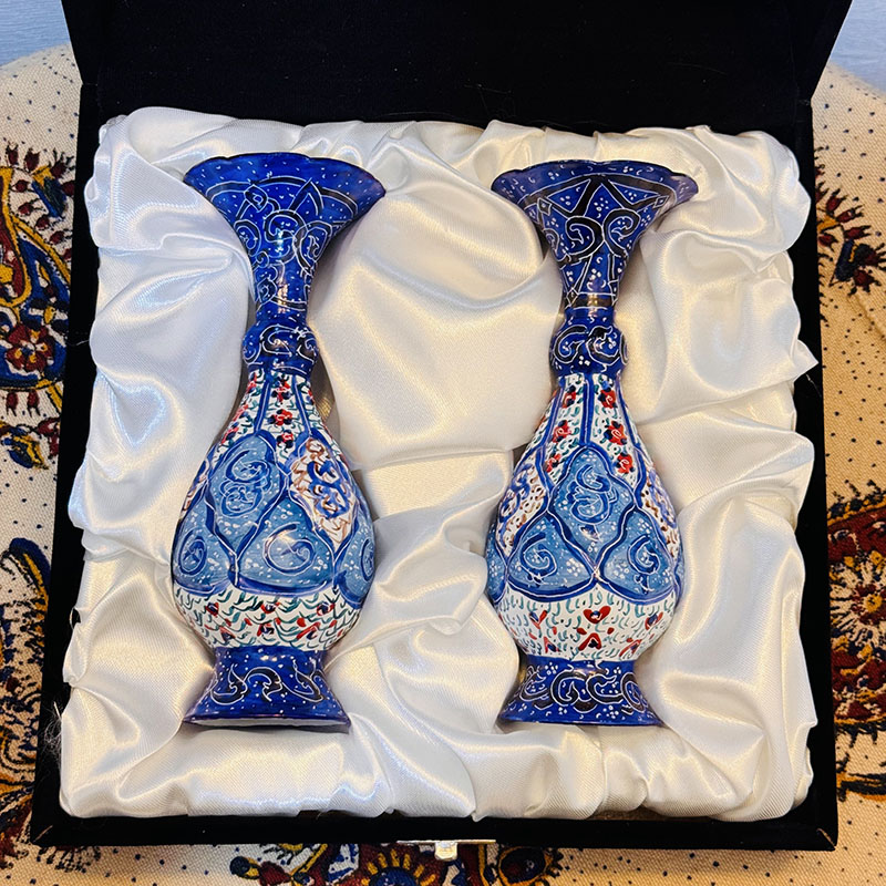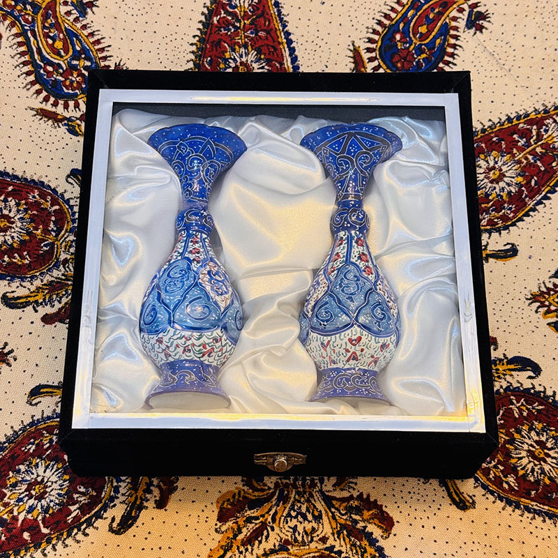 هدیه جفت گلدان میناکاری فانتزی با جعبه مخمل