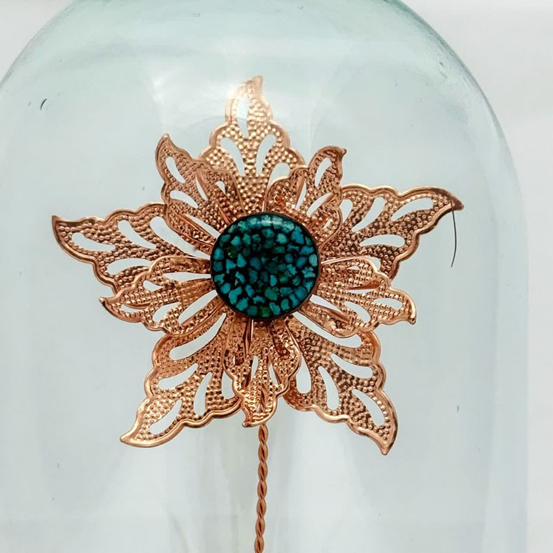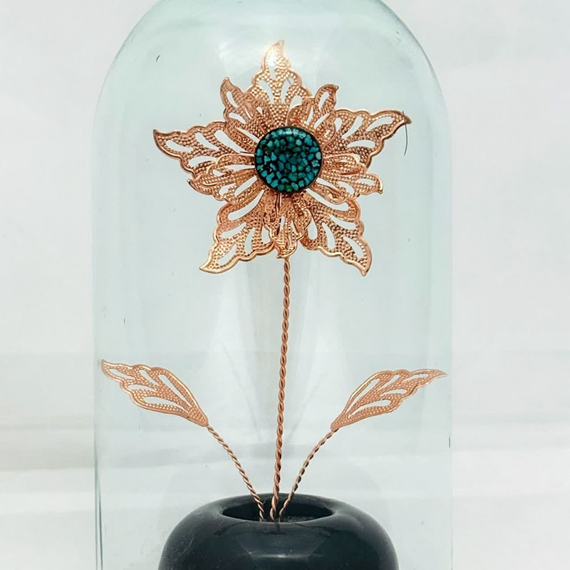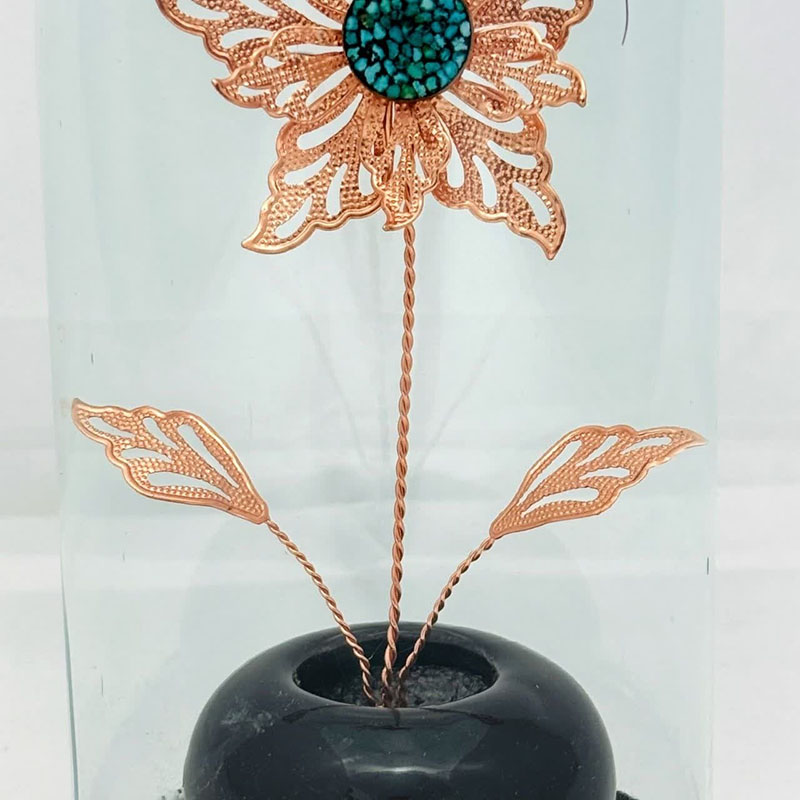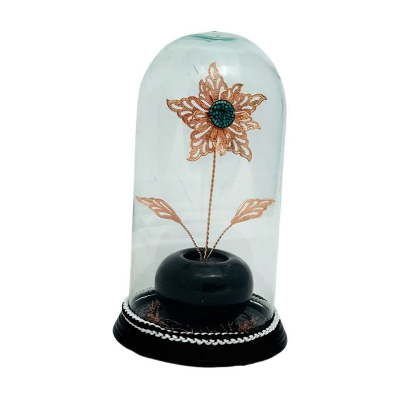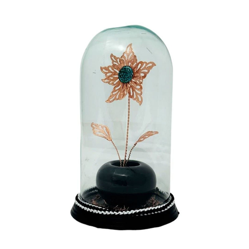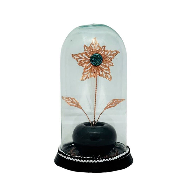 حباب استوانه ای گل مسی و سنگ فیروزه از جنس مس و روکش لایه محافظ (پلی استر) عرض 12 و ارتفاع 23 سانتیمتر